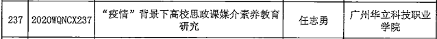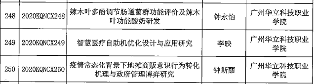 根据《广东省教育厅关于公布2020年度普通高校认定类科研项目立项名单的通知》(粤教科函〔2020〕6号),我校有8项课题获得立项,这些项目将为我校“创新强校工程”建设及学校的内涵式发展发挥较大的作用,增强我校教职工开展科研创新的主动性和积极性,提升我校自主创新能力。