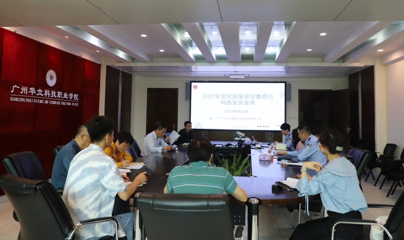 4月15日全民国家安全教育日,增城区公安分局网络警察大队欧晓三副大队长等一行莅临我校开展网络安全防范宣传工作,会议在行政楼305举行,我校副校长高尧来、各职能部门负责人及网络技术工作人员出席了会议。
