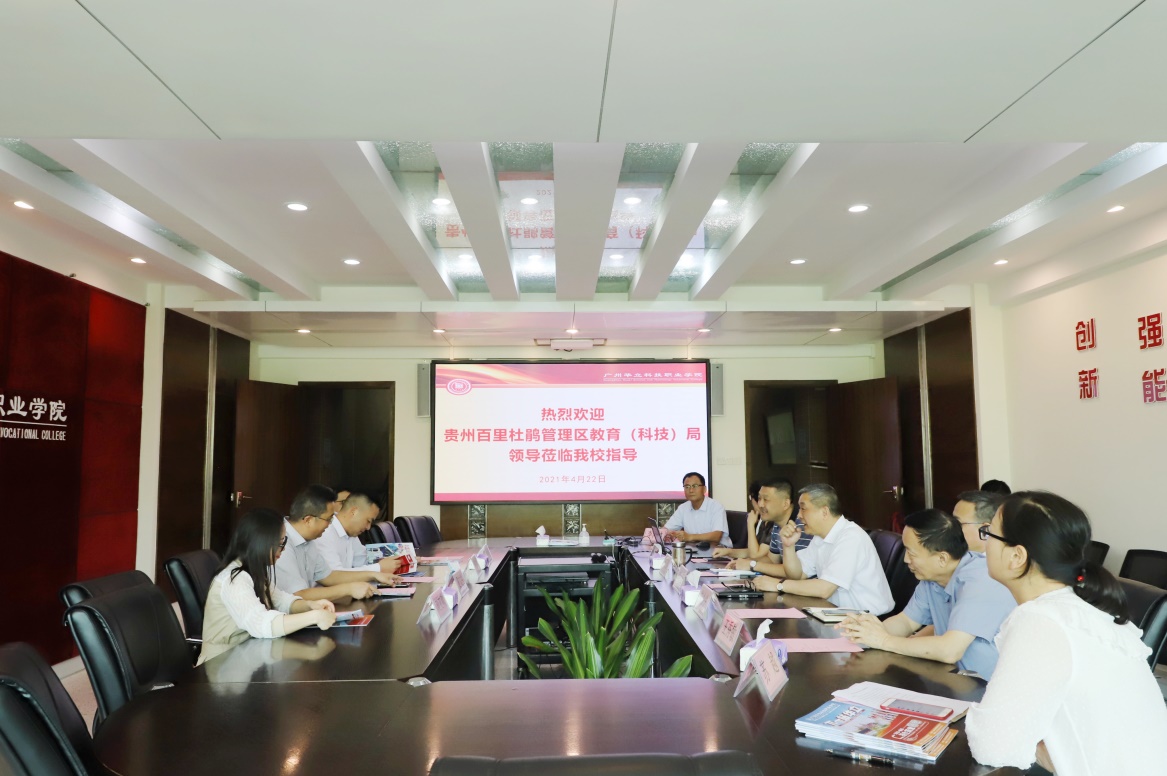2021年4月22日,广州市增城区与毕节市百里杜鹃管理区教育对口帮扶交流座谈会在学校行政楼305举行。增城区党校校长夏文生、百里杜鹃管理区教育局副局长李文平、学校校长刘庄及双方相关工作人员参加了交流会。校长刘庄主持交流座谈会并致欢迎辞。