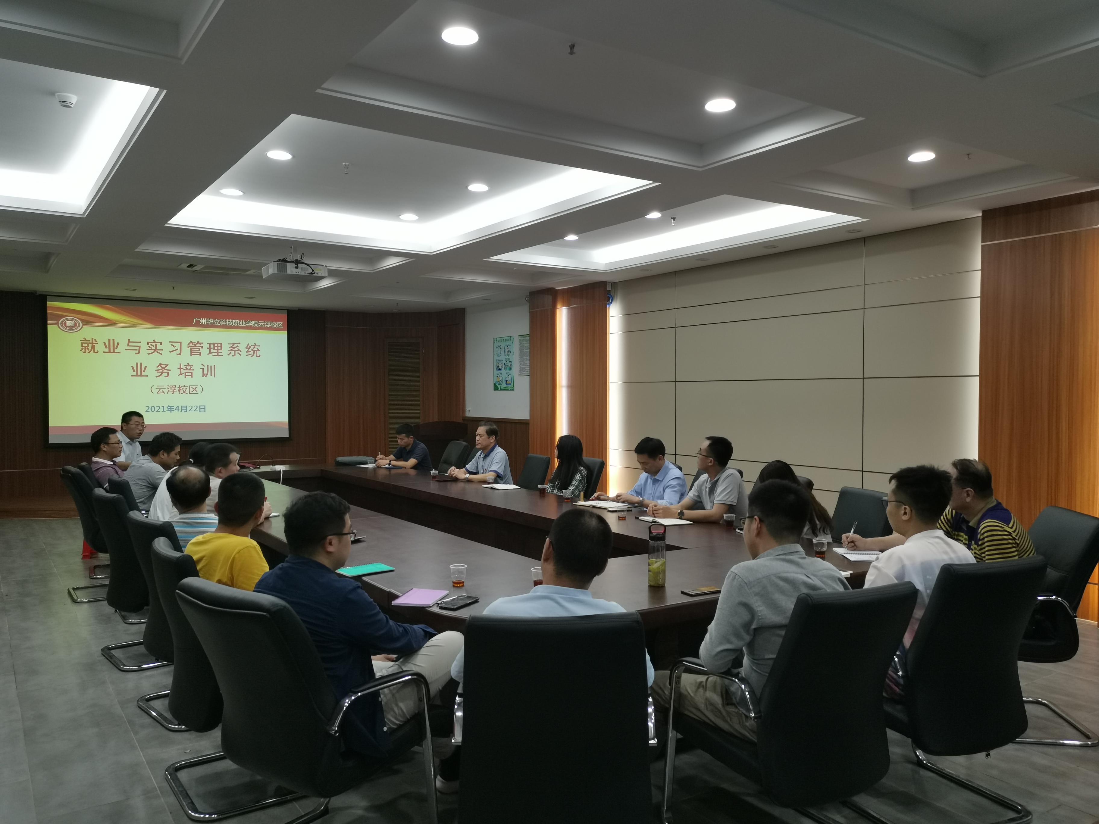 为了进一步推进实习与就业工作的顺利开展,提升校外教学指导老师的操作就业与实习管理系统的业务能力,4月22日晚上,我校云浮校区在图书馆第一会议室召开就业与实习管理系统业务培训会。黄乐览副校长、高尧来副校长,校外办、就业办,云浮校区教务处、校外办主要负责人,各系主任,以及全体校外指导老师出席了培训会议。