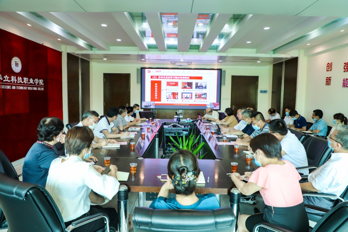 林伟健同志表示,我校党史学习教育理论与实践相结合,多形式、多层次稳步有序推进。一加强组织领导、党政领导班子齐心协力,提高政治站位,作表率,推动党史学习教育取得成效;二坚持学深学透,做到融汇贯通、学以致用;学原著、原文,重点学,真正做到学史明理、学史增信、学史崇德、学史力行;三以实践促效果,先进典型促良好风气,开展“我为群众办实事”系列实践活动,巩固党史学习教育的效果;四研究促教学,把党史教育融入思政课教学。在教学过程中强化党史学习教育的内容,使学生从中得到教育,要求马克思主义学院发动教师撰写文章、申报课题,以科研促教学,已完成党史学习书籍《中国共产党会议史》的撰写。