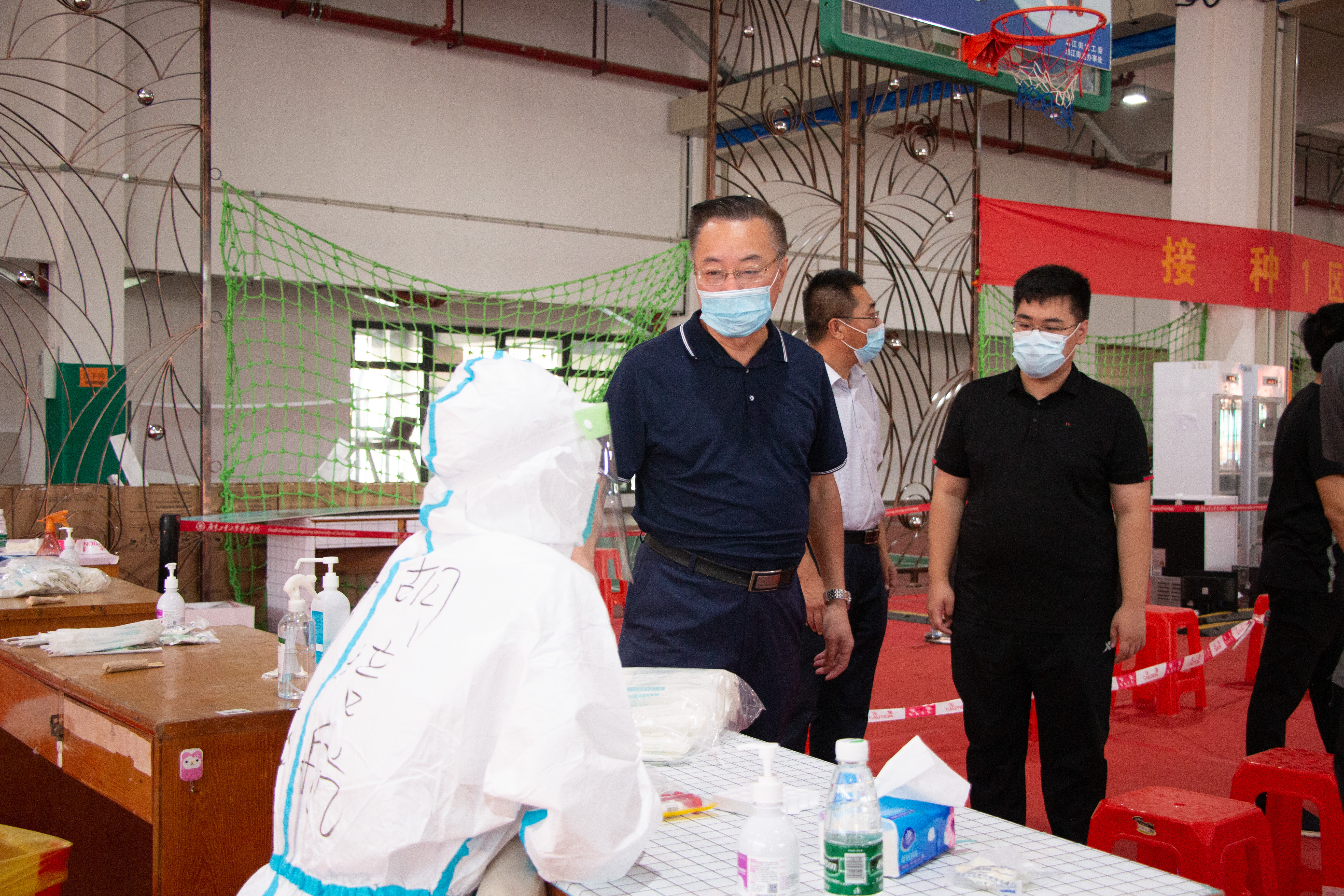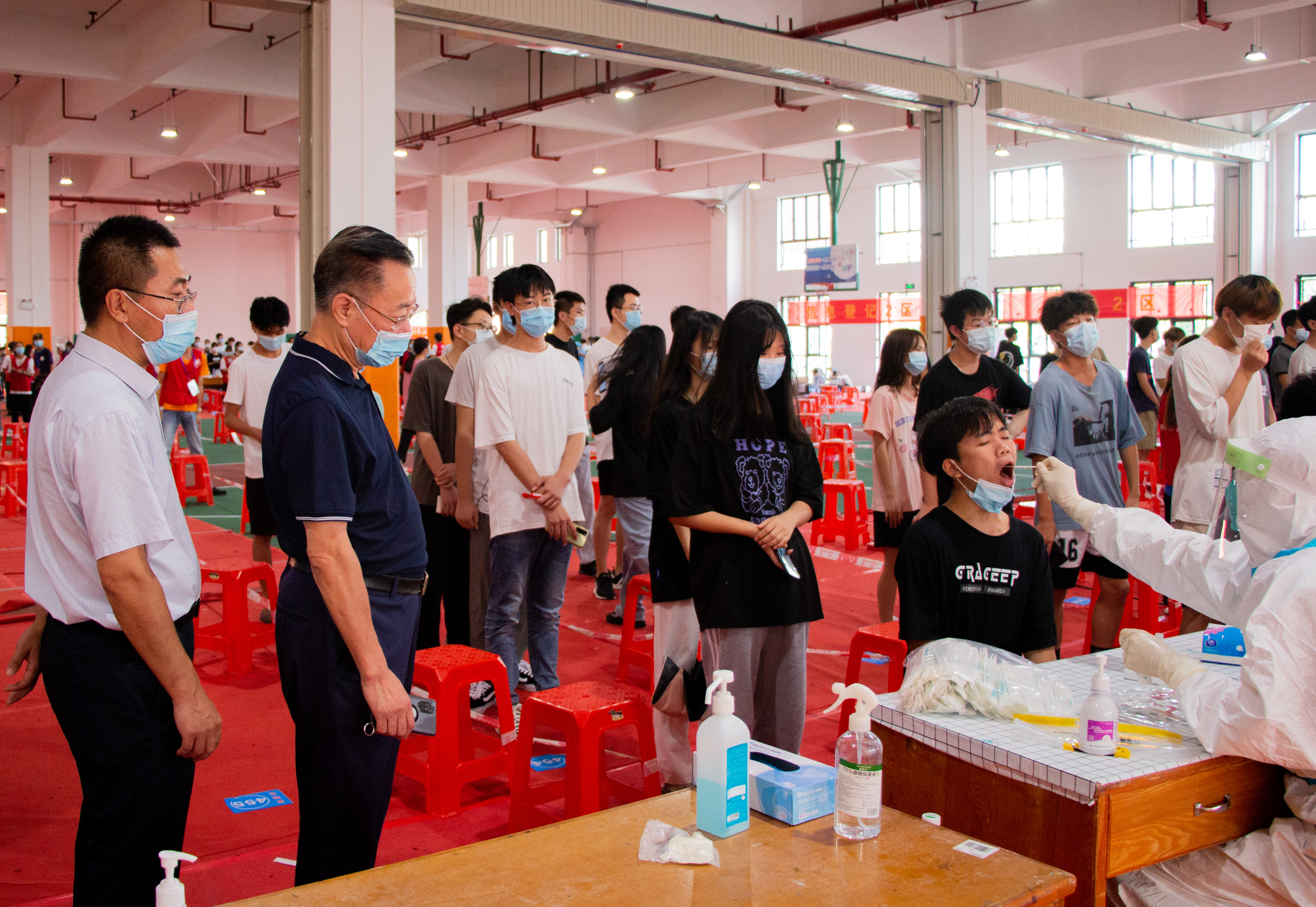 6月5日下午,党委书记林伟健等校领导第一时间到达现场指导,全程跟进核酸检测工作,看望慰问医护人员和工作人员,希望大家在做好自我保护的同时努力工作,齐心协力完成好全员检测。