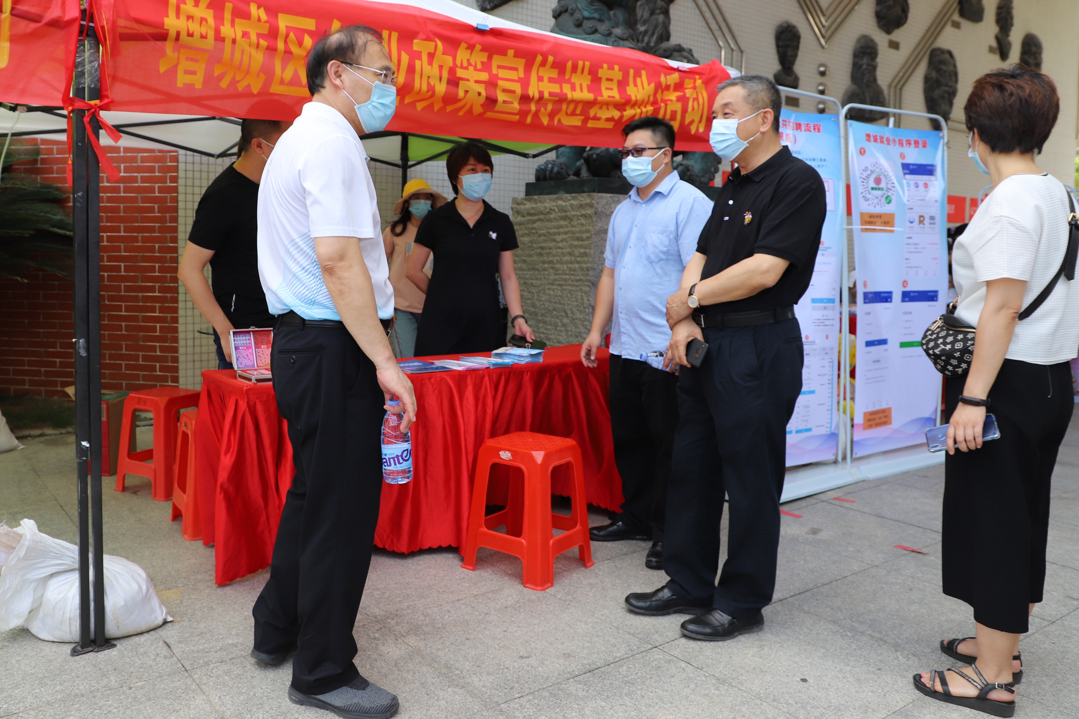 为严把疫情防控关,招聘会活动采取实行分时段、间隔性入场,现场仅设置单个出入口,入场者须出示健康码、测量体温,扫码实名登记。工作人员动态掌握招聘会场内人员实时数据,及时限流,确保场内人员不拥挤、不扎堆。