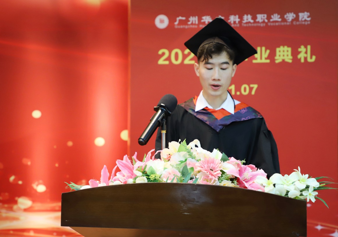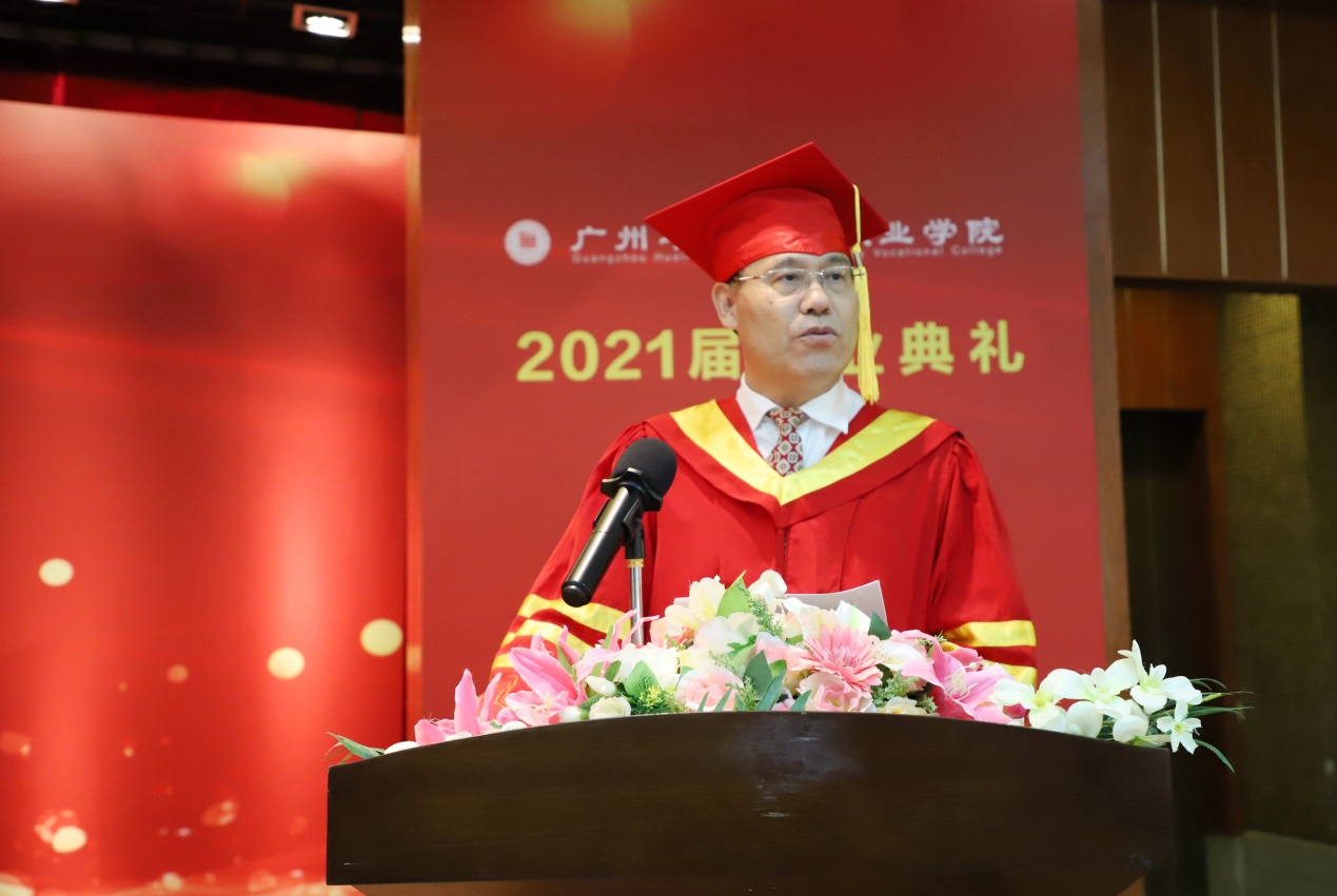 党委书记林伟健宣读了《广州华立科技职业学院关于表彰我校2021届优秀毕业生的决定》,并对毕业生表达了祝贺。