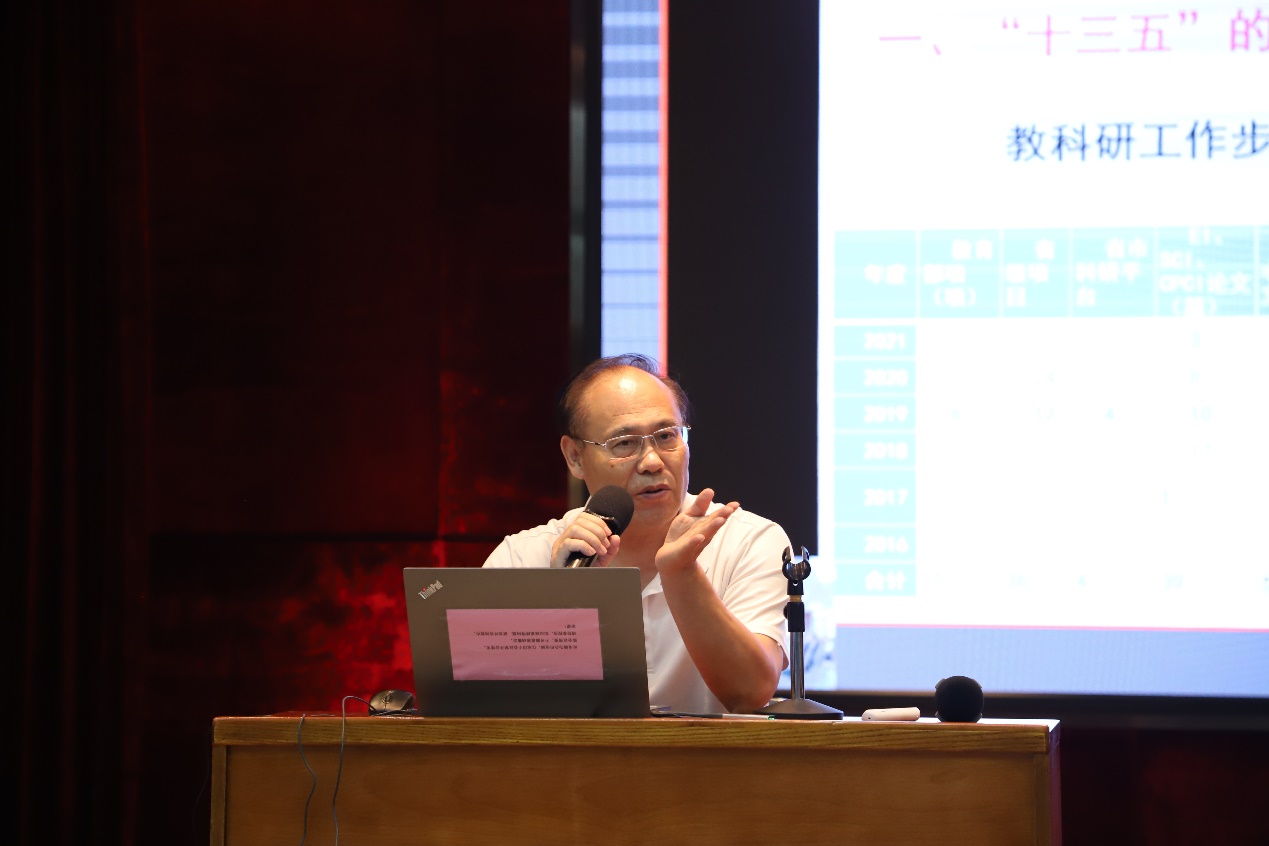 会议最后,马龙海执行校长作总结发言。马校长充分肯定了五位代表的精彩发言,他指出,学校的教科研工作步入了正常发展轨道,但职业教育改革步入新发展格局、广东高等教育布局结构调整、广东民办高等教育竞争、学校升本目标和生存发展等为学校的教科研工作带来新的挑战。马校长强调,面对新挑战,学校“十四五”期间要坚持内涵发展,以区域高水平学校和高水平专业群建设为主线,以“创强”、“双计划”目标为引领,以提升服务能力为抓手,以科研团队培育为核心,以学术道德建设为保证,着力实现从个人研究到团队研究、从自发研究到有组织导向的研究、从单一学科到多学科交叉研究的三大转变。