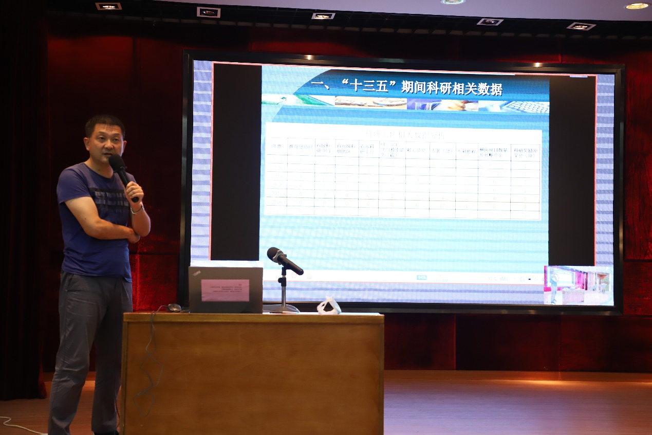科研处李卫国副处长总结了学校“十三五”期间的科研工作,汇报了2020-2021学年学校科研工作成绩:人工智能科普基地、省部级教科研平台等科研平台和项目建设有进展,乡村振兴工作凸显华立品牌特色,成为广东民办高校科协联盟乡村振兴产业子联盟副主席单位、广东民办高校智能制造学科与产业联盟副主席单位,荣获广东省民办高校优秀科协二等奖、广东省高等教育学会第一届优秀高等教育研究成果奖(研究报告类)三等奖,执行校长马龙海教授、艺传学院院长李于昆教授、马克思主义学院常务副院长廖良初教授入选广东省哲学社会科学成果奖评审专家库。最后,李副处长表示,新学年科研处将进一步加强重点平台和项目建设,期待学校引进的科研人才思维碰撞出更多成果,服务乡村振兴,做出华立特色。