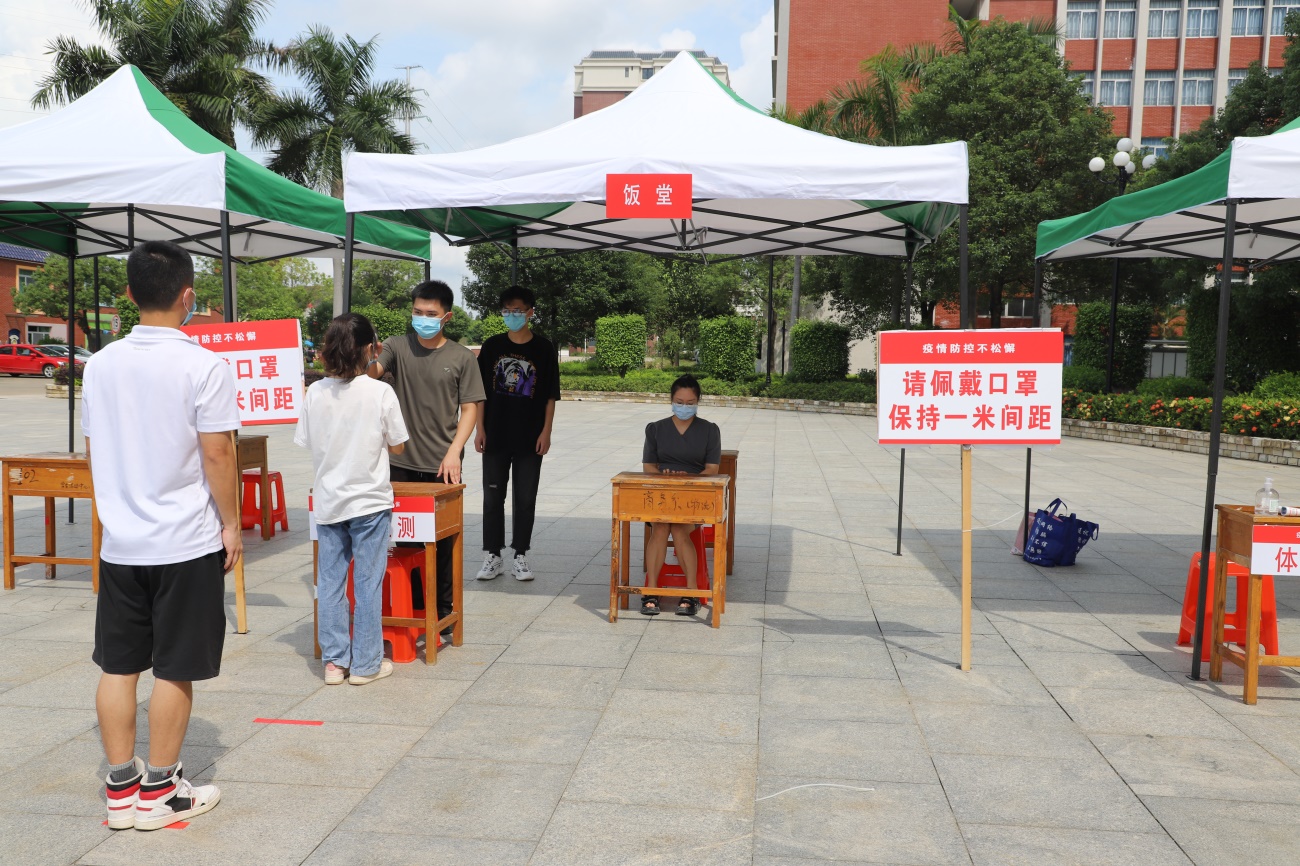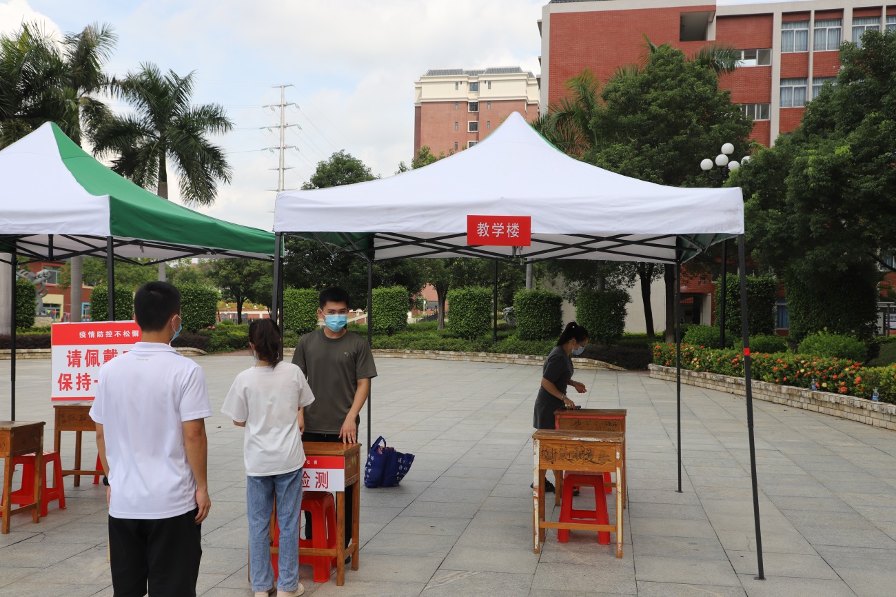 根据上级有关秋季开学和疫情防控部署要求,为科学、规范、有效地防控新冠肺炎疫情,提高学校疫情防控应急处置能力,规范应急处置具体流程,检验应急处置能力,确保开学返校工作的安全顺畅和开学后良好的教育教学秩序,切实保障返校师生的生命安全和身体健康。8月25日,我校在综合楼广场开展2021年秋季学期学生返校疫情防控应急处置模拟演练。学校校长刘庄、党委书记林伟健、副校长高尧来现场指挥。学校办公室、学生处主要负责人以及各二级学院院长、副院长、全体学管人员严格按最新防控规范和要求进行了演练。