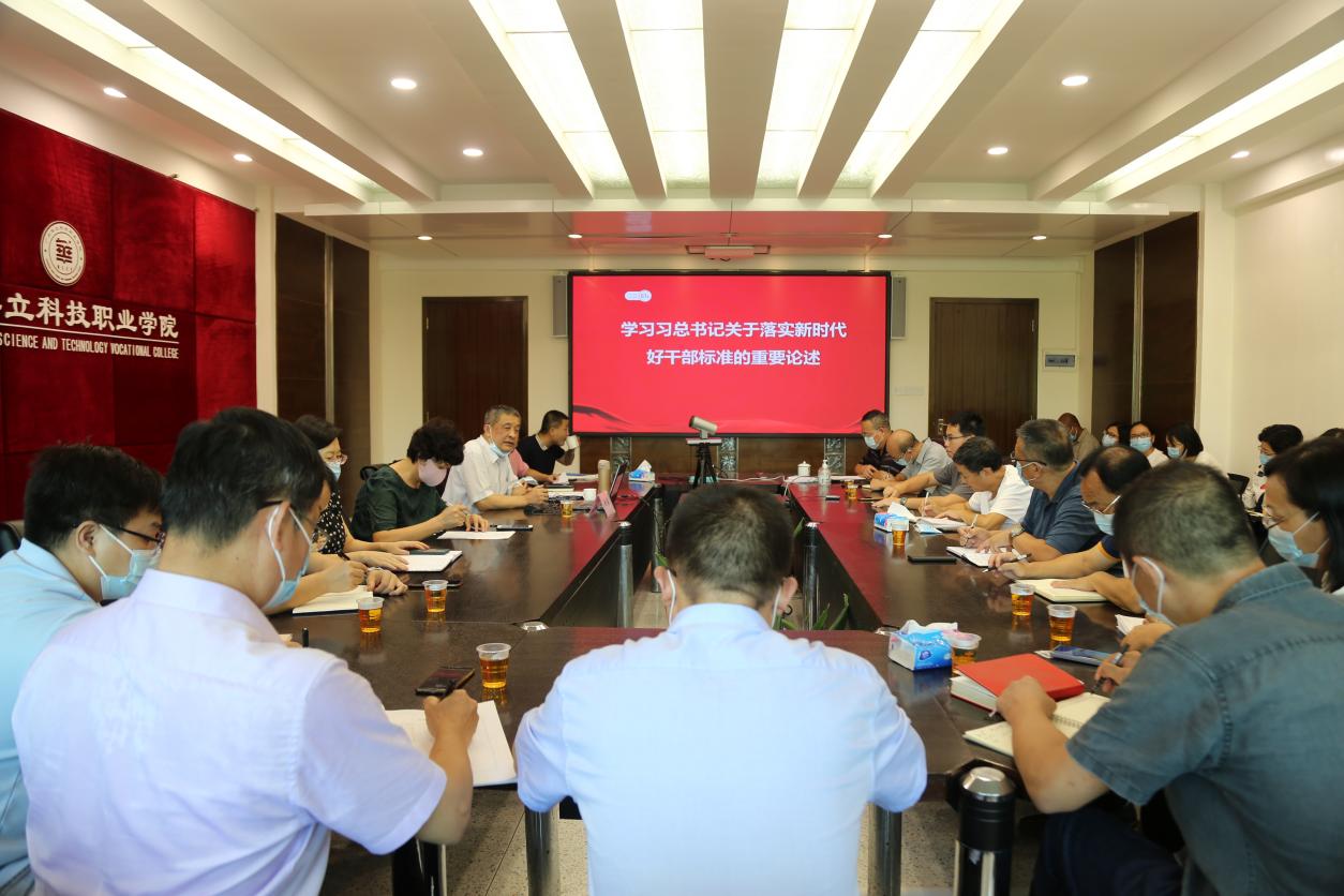 8月30日,学校党委在行政楼305会议室组织召开新学期第三次专题党课。学校党委副书记、校长刘庄以“学习习近平总书记关于落实新时代好干部标准的重要论述”为主题,围绕“新时代好干部标准”、“怎样才是好干部”、“怎样成为好干部”、“怎样选用好干部”、“‘十四五’面临的机遇与挑战”结合习近平总书记“七一”重要讲话展开讲授。他指出,当前,我们要结合党史学习教育活动,结合学院“十四五”规划及新学年工作部署,引导广大党员干部自觉在思想上政治上行动上同以习近平总书记为核心的党中央保持高度一致,牢记“为党育人、为国育才”的光荣使命和神圣职责,忠于职守、爱岗敬业、勇于担当、乐于奉献,共同推动华立职院各项工作跃上新台阶。