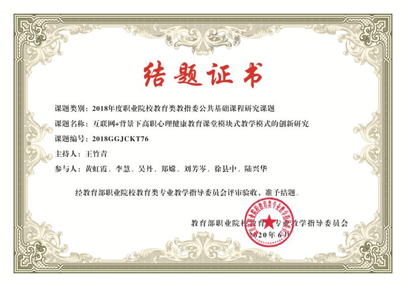项目结题过程中学校组织省内专家对项目进行了结题初审。通过查看项目主持人的结题报告、查阅项目研究资料、讨论交流评审意见、召开反馈会等程序,对每个课题取得的研究成果给予了认真评价。总体上认为成果切合实际,定位准确,研究方法科学,研究过程资料详实,项目负责人能依照国家法律法规和科研项目管理相关规定,认真履行科研项目任务书(合同)或立项文件中的各项条款,较好地达成研究目标,研究富有成效,并进一步提出了完善改进的意见和建议。教育部项目通过结题验收,增强了我校科研人员的信心,激发了教师的研究热情,对提高教师科研能力和提升学校内涵发展水平起到促进作用。