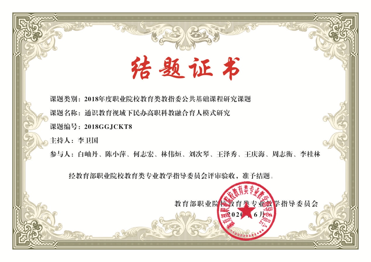 2019年以来,我校共有9个教育部各部门下达的项目获得立项。学校一直主张科研为教学服务的理念,高度重视项目研究的过程性管理,规定研究成果要有教育性和实践性作用,并积极引导和鼓励科研人员如期高质量完成项目。