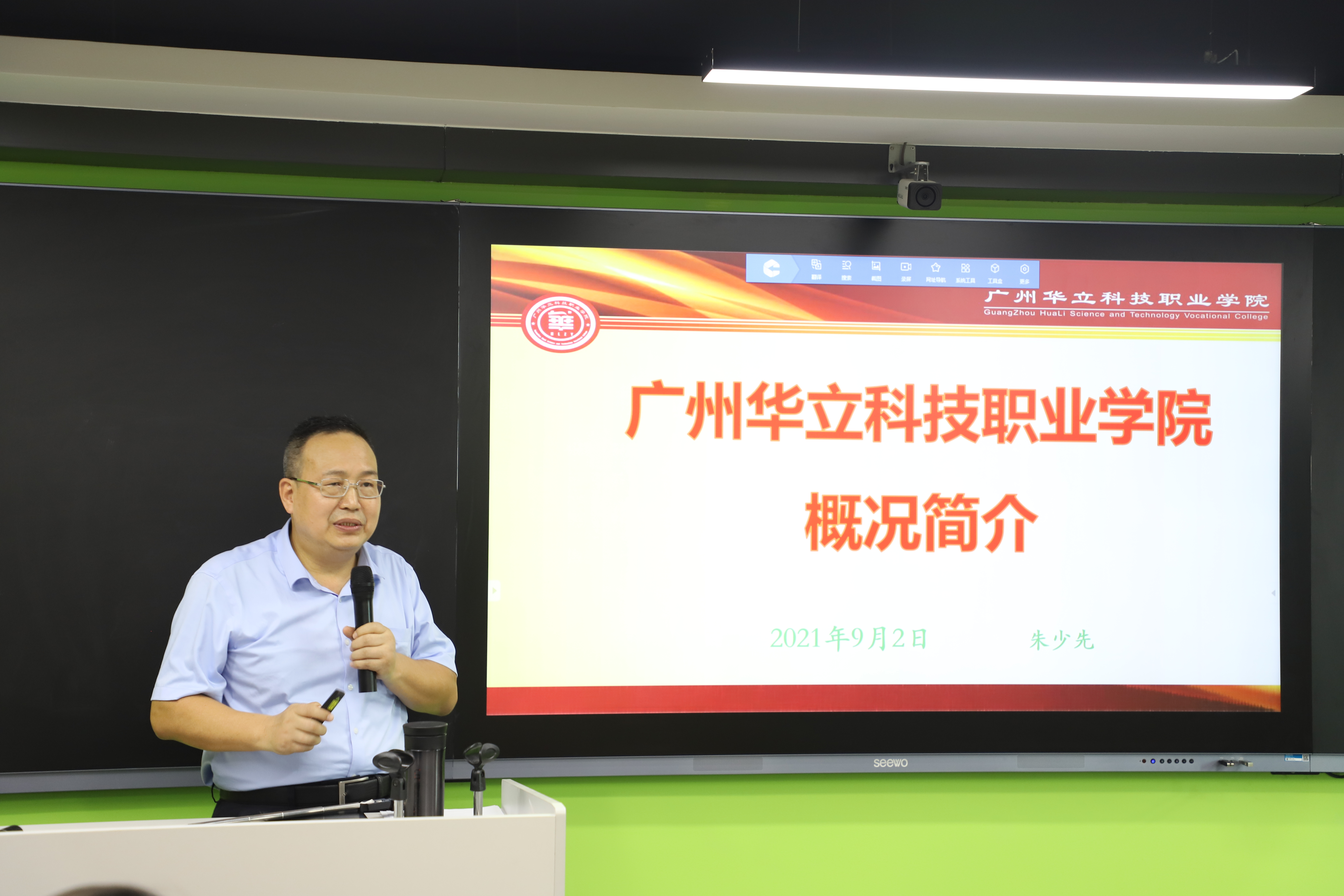 接着,校办主任朱少先对学校的基本情况作了一个全面简介,包括学校的发展简史、职能部门、二级学院、学校章程等,重点介绍了学校的办学理念和发展目标,希望新入职教师了解华立文化,尽快融入华立大家庭。