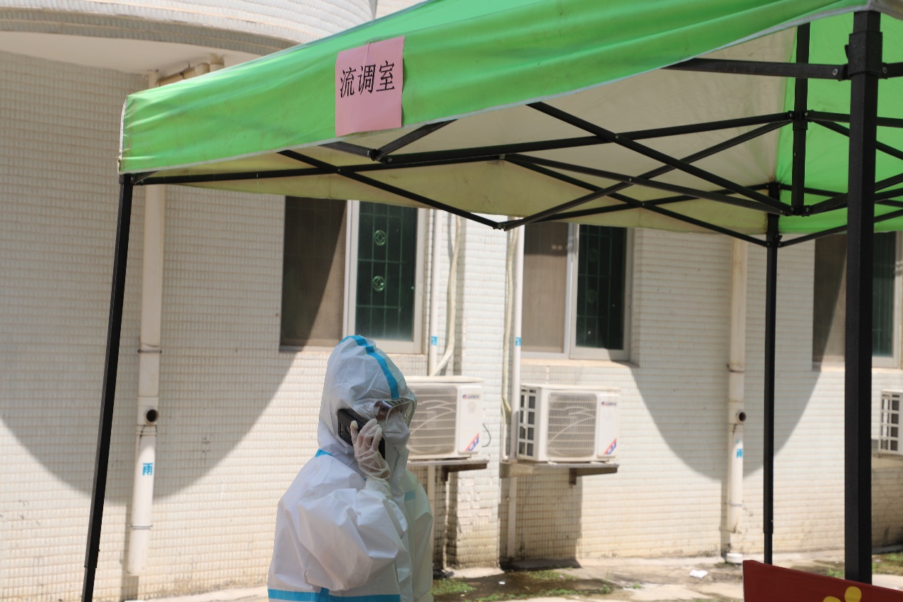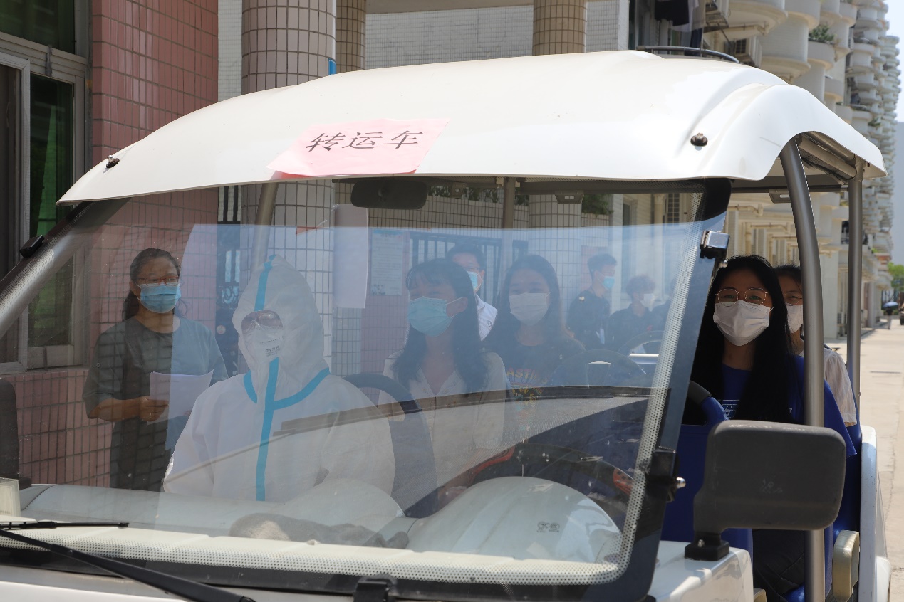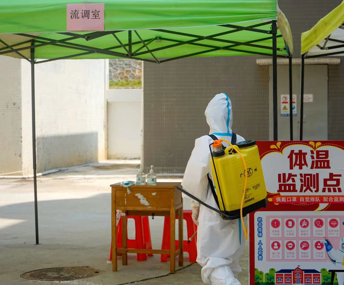 场景六:重点人员转运和场所消杀。将重点人员转运至集中隔离点,消毒人员对张某的宿舍、课室等场所进行消毒。