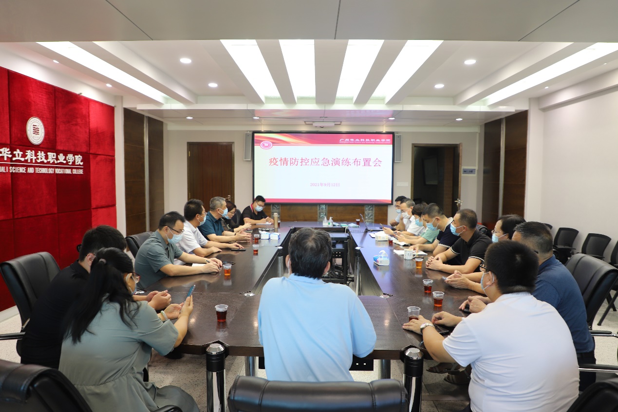 为深入贯彻落实广东省、广州市关于做好2021年秋季开学疫情防控工作相关会议和文件要求,进一步提升学校疫情防控和应急处置能力,确保师生健康和校园安全,按照《广州市2021年秋季开学各级各类学校新冠肺炎疫情应急处置演练方案》要求, 9月12日上午9:30,广州华立科技职业学院广州校区组织开展2021年秋季开学新冠疫情防控第二次演练。学校校长刘庄,副书记、副校长高尧来,副校长马俊,校长助理郭仲先等在校的领导,学校防控领导小组成员、各二级学院学生工作负责人、辅导员及教师代表参加现场演练。演练前,学校开展疫情防控应急演练布置会,提前筹备,精密安排。