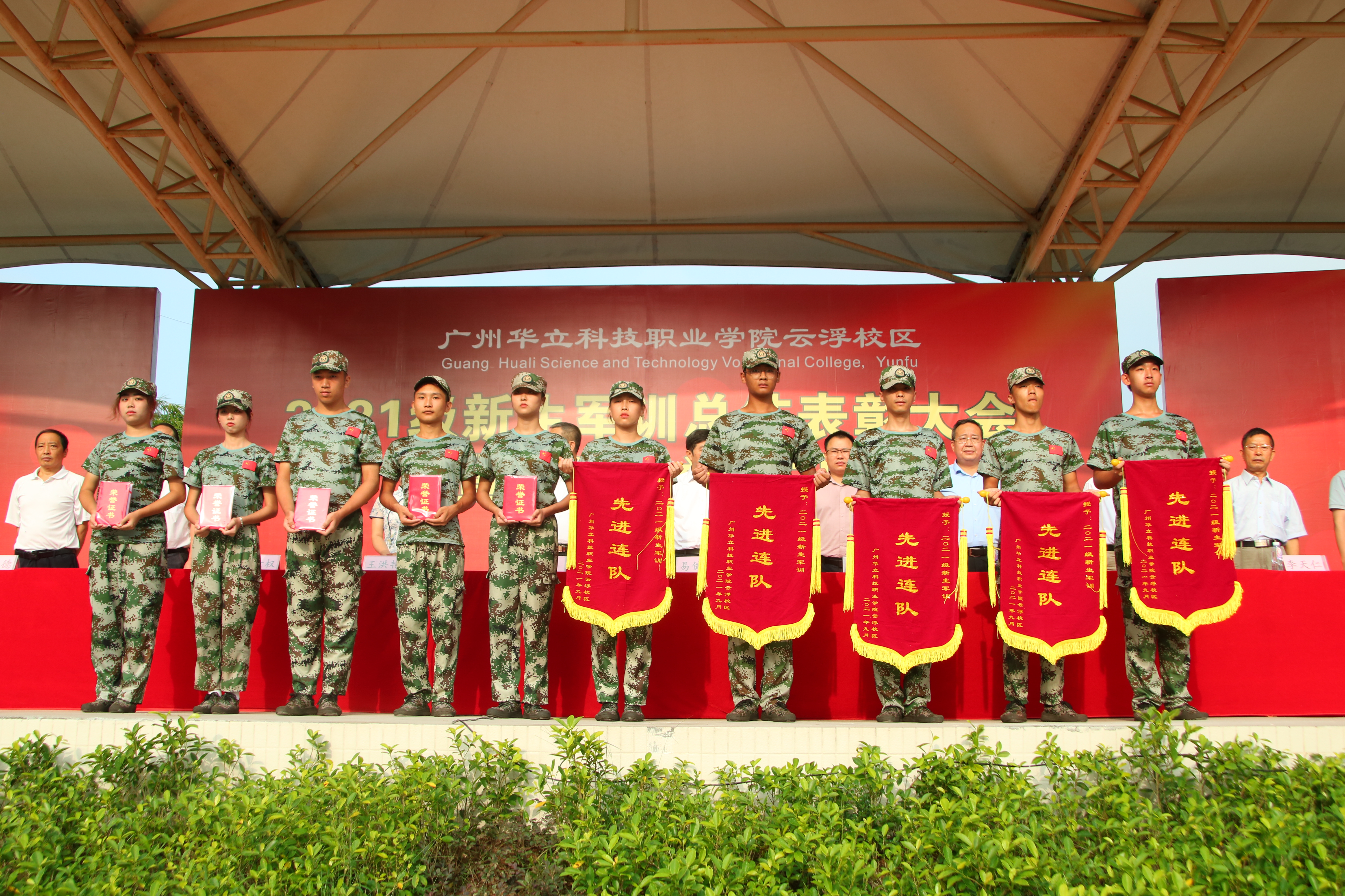 我校云浮校区2021级新生军训总结表彰大会暨新生开学典礼在雄壮的军乐声和热烈的掌声中落下帷幕。