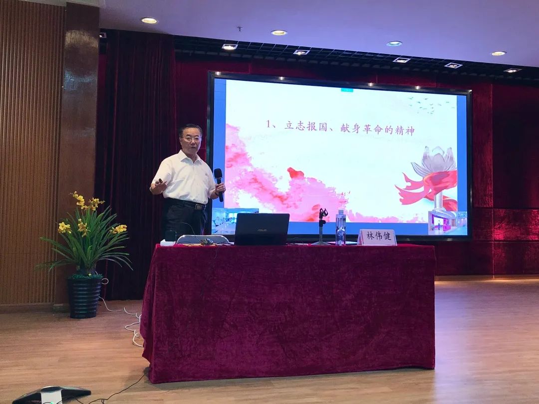 林伟健书记以《赓续红色血脉,弘扬红色精神 ——从毛泽东诗词中学中共党史》为题,从伟大建党精神构建起了中国共产党人的精神谱系、毛泽东诗词中的伟大精神、伟人的风采和情怀激励着我们奋进新时代三个方面层层铺开,抽丝剥茧,对毛主席的诗词娓娓道来,横贯其中,把深刻理论讲得深入浅出,妙趣横生,是一场不可多得的学习党史的文化盛宴。