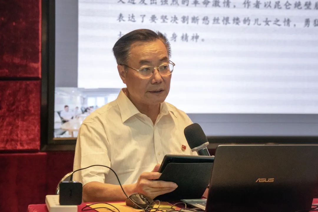 林伟健书记指出,一百年前,中国共产党的先驱们创建了中国共产党,形成的伟大建党精神,是中国共产党的精神之源。我们要从毛泽东诗词中汲取更好的精神营养,加深对共产党人精神谱系的认识和理解。林伟健书记强调,毛泽东同志在为中国人民不懈奋斗中,表现出一个伟大革命领袖高瞻远瞩的政治远见,用他的非凡才能、人格魅力成就了中国共产党的伟大事业,他思想博大深邃、胸怀坦荡宽广,文韬武略兼备。他的诗词立意高远、思想深邃、意境崇高、词章优美,蕴含着立志报国、献身革命,众志成城、敢于斗争,百折不挠、不畏牺牲,气吞山河、壮志豪情,改天换地、革命到底,胸怀天下、人民至上,知难而上、不断进取这七种红色精神,聚焦了中华民族的伟岸形象和豪迈气派,凸显了共产党人的高尚情怀。