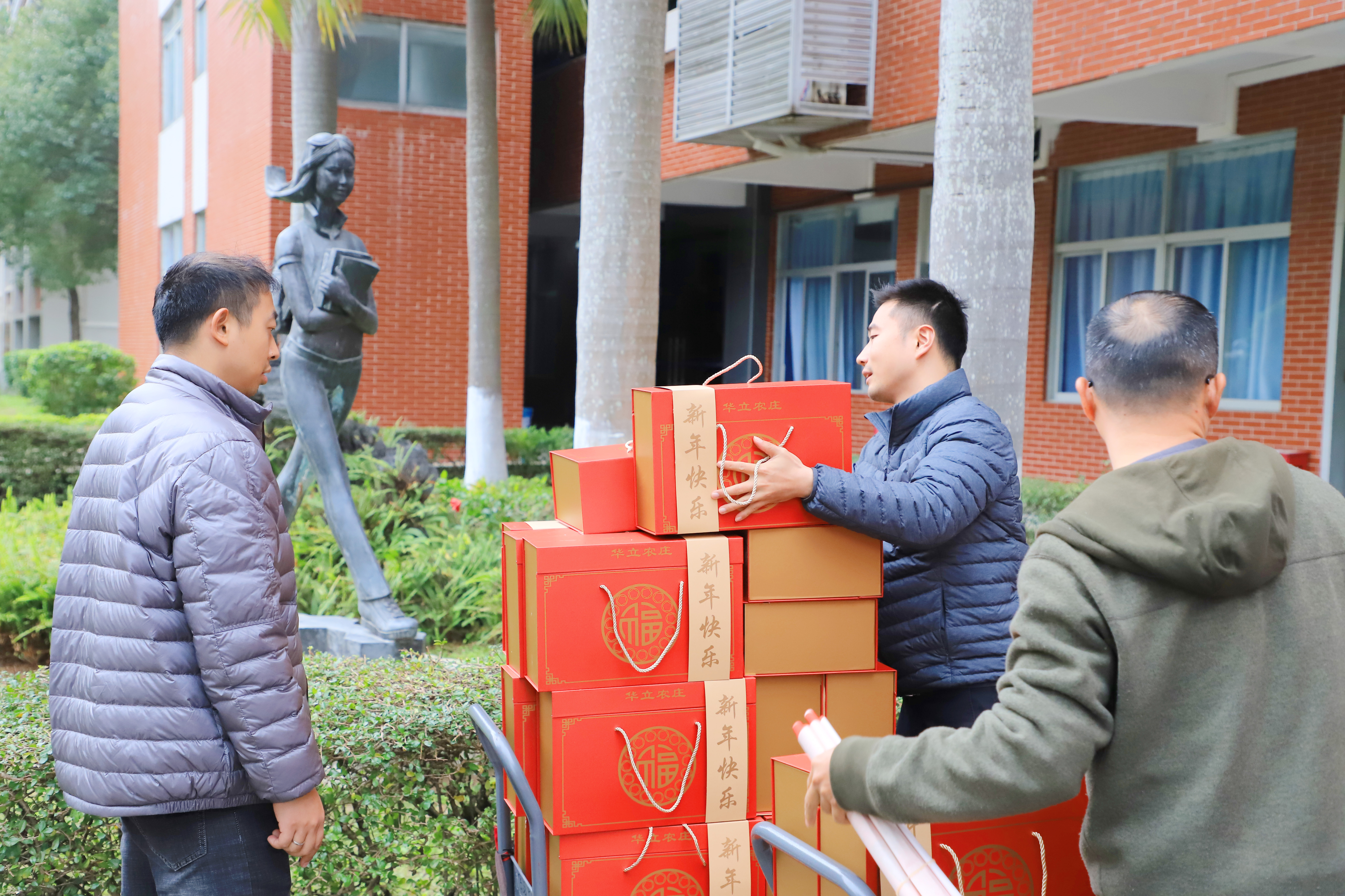 虎年新春佳节来临之际,学校为向在华立园辛勒奋斗的职院教工的表示感谢和关怀,由校工会在腊八节下午组织各部门工会小组,在学校综合楼廊厅向所有教工发放华立园虎年精心精制的年货礼盒,让返乡以及留穗过春节的教工感受华立园的关心和虎年新春的温暖。