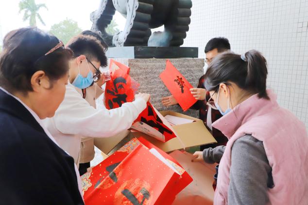 此外,学校书法协会举行“写春联・送福气”活动,一张张由学生们书写的春联,凝聚着对中国优秀传统文化的热爱和对春节的美好祝福,成为老师们手中最有“福气”的年货。