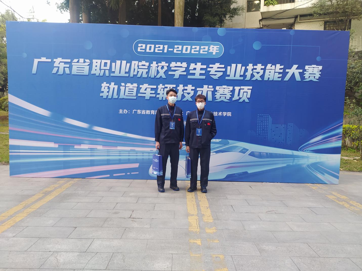 2022年3月12日,由广东省教育厅主办的2021-2022年度广东省职业院校学生专业技能大赛轨道车辆技术赛项在广东交通职业技术学院举行。我校云浮校区机电系20级汽修专业学生林传川、戴庆煌组成的竞赛团队,在轨道车辆技术赛项斩获三等奖。