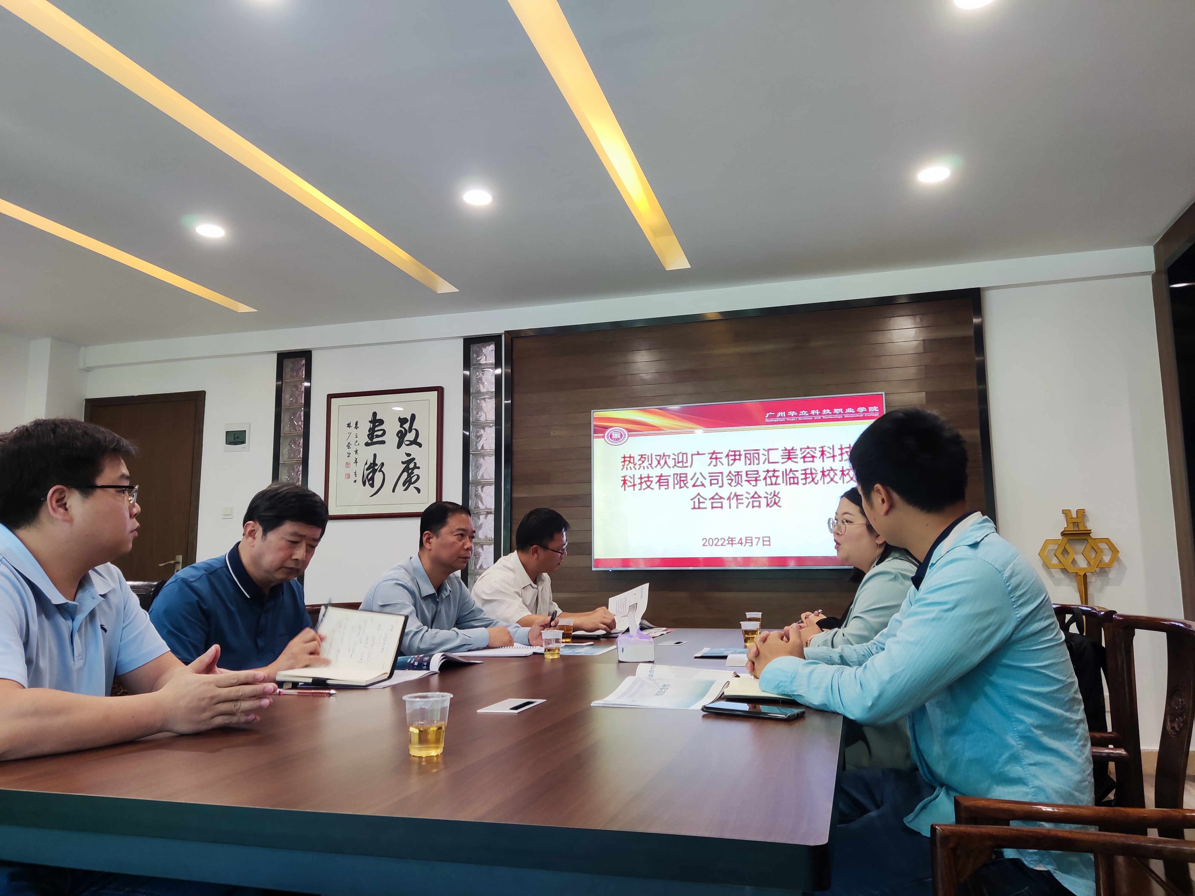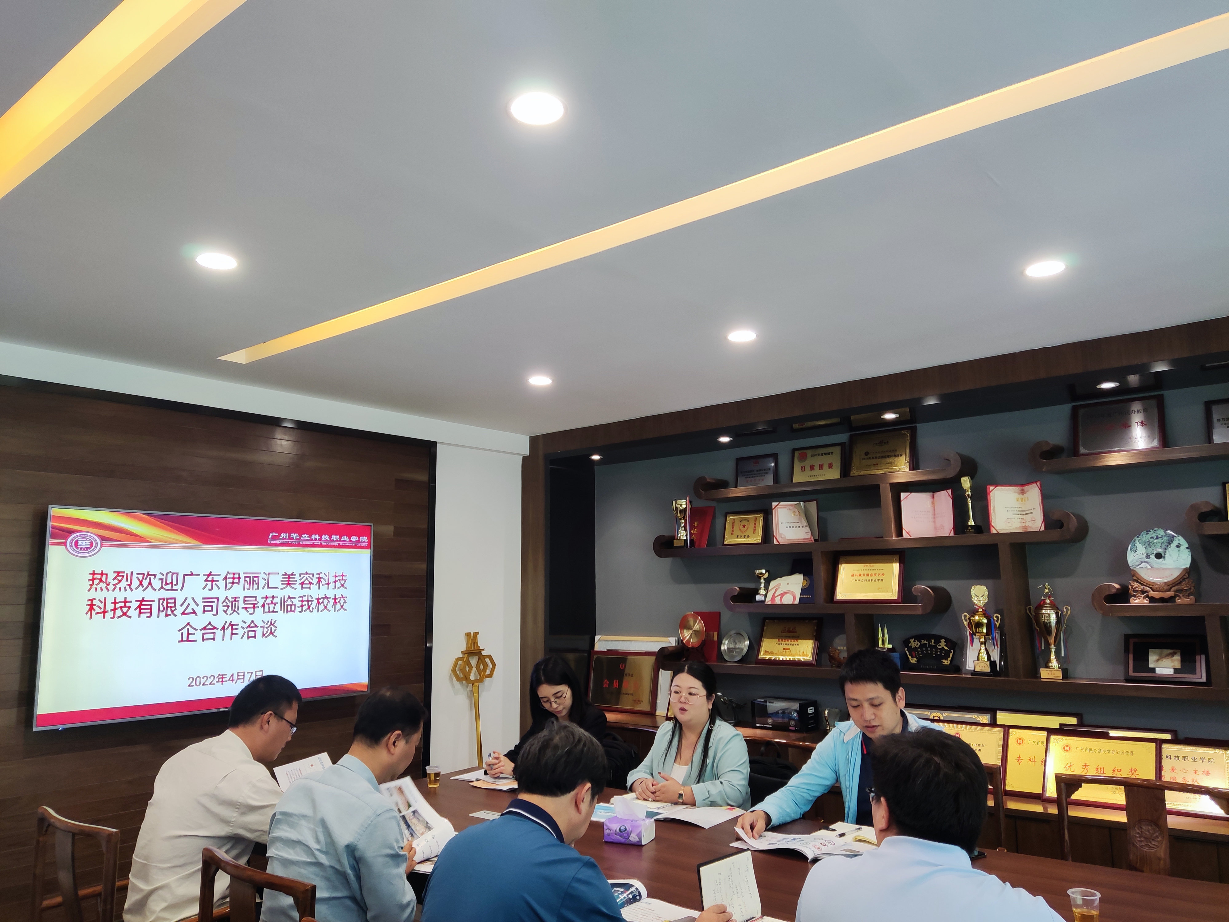 为贯彻落实党中央、国务院关于高校毕业生就业工作的决策部署,加快健全高校毕业生市场化社会化的就业创业工作机制,千方百计开拓更多就业创业岗位和机会,深入落实就业工作“一把手”工程,扎实开展高校书记校长访企拓岗促就业专项行动。2022年4月7日上午,广州华立科技职业学院副校长易健民、健康学院院长雷毅雄、校外教学与就业处处长钟文浩、校外教学科科长韦建林等与广东伊丽汇美容科技有限公司张蕾经理一行在广州校区行政楼301进行以“用人单位大走访,全员联动促就业”为主题的研讨会。