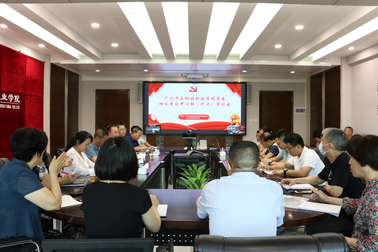 6月22日,广州华立科技职业学院党委在行政楼305会议室举办理论中心组学习(扩大)会议,专题学习广东省第十三次党代会精神,布署学习贯彻落实工作。学校党委书记林伟健教授主持会议并讲话。会议以视频形式连线云浮校区进行,学校党委委员、校领导、职能部门负责人和二级学院负责人、基层党组织书记、马克思主义学院全体政思教师参会学习。