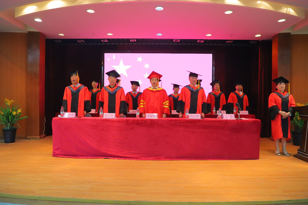毕业典礼在雄壮的国歌声中拉开帷幕。