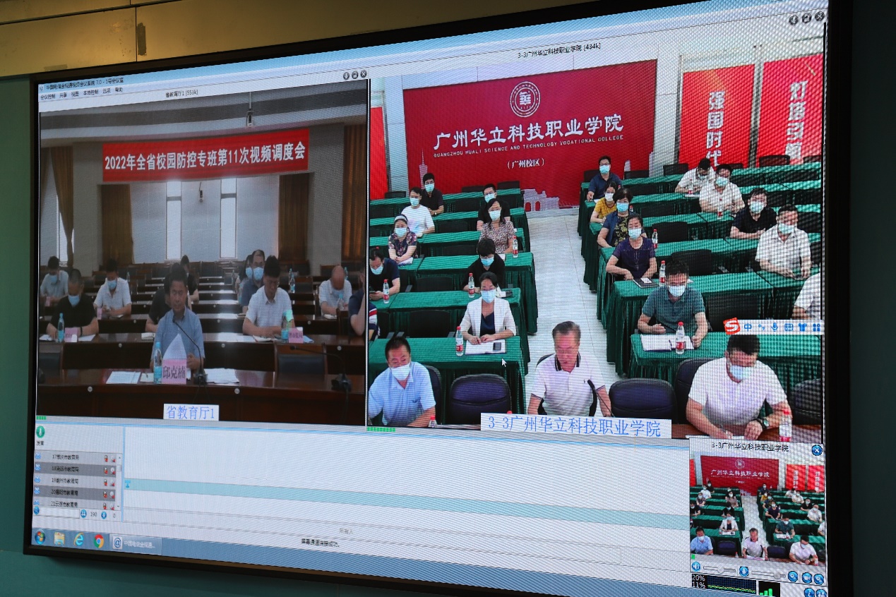 7月12日,全省2022年校园疫情防控工作专班第11次视频调度会召开,省教育厅二级巡视员邱克楠主持会议并讲话。广州华立科技职业学院在图书馆104设置分会场,学校党委书记林伟健、副校长高尧来出席会议,林伟健书记代表我校在全省校园疫情防控会议上做了主题发言。