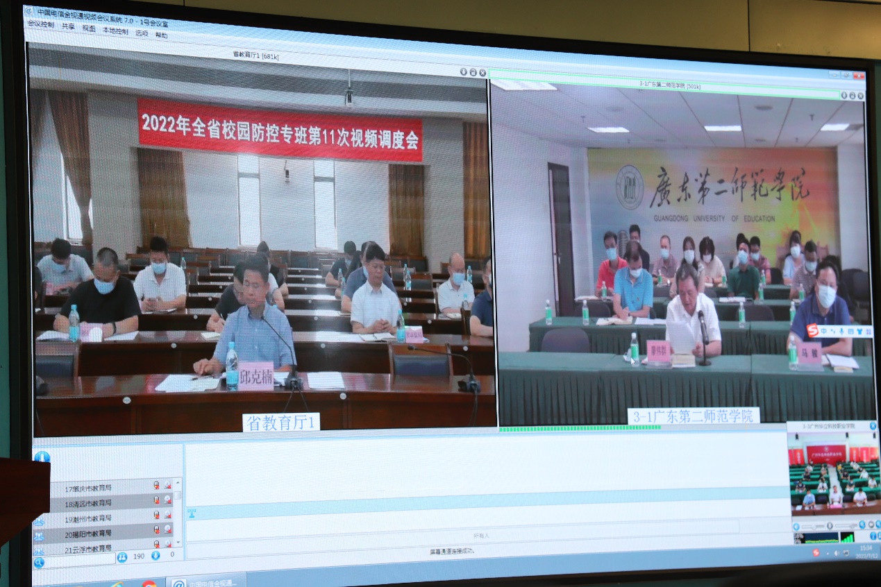 佛山市、中山市、茂名市教育局和广东第二师范学院、五邑大学和我校作为代表汇报近期疫情防控情况。