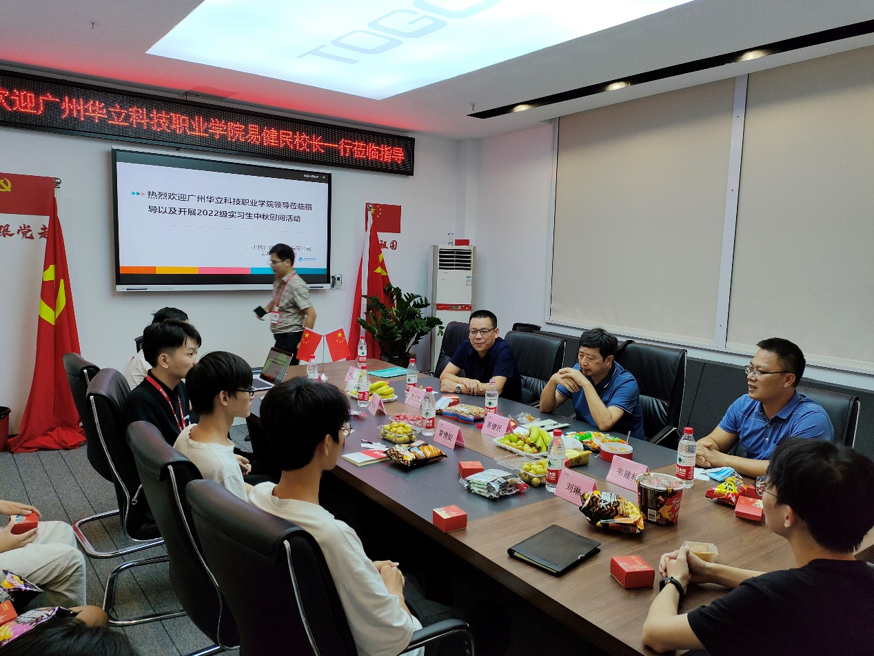 为积极响应教育部、广东省教育厅“高校书记校长访企拓岗促就业”专项行动要求,在中秋来临之际,广州华立科技职业学院校长易健民(博士生导师)教授,带队走访调研广州腾科网络技术有限公司并慰问在岗实习学生,计算机信息工程学院办公室主任等相关人员陪同前往。