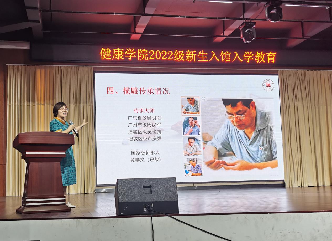 学校领导为新生宣讲传统文化成为华立职院开学季入学教育一大亮点。6日,马俊常务副校长亲临图书馆8楼,为健康学院22级新生送上一份文化大餐,她通过对华立校园文化建设特色品牌工程——榄雕艺术传承基地的介绍,展现了国家级非遗项目榄雕这一中华优秀传统文化的魅力,以此激发同学们的文化自信和社会责任感,让刚刚迈入职业教育门槛的大学生感受到工匠精神和劳动精神对未来职业生涯的的重要意义。