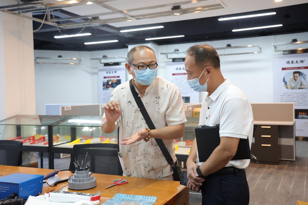 马俊常务副校长为新生介绍榄雕传承基地情况