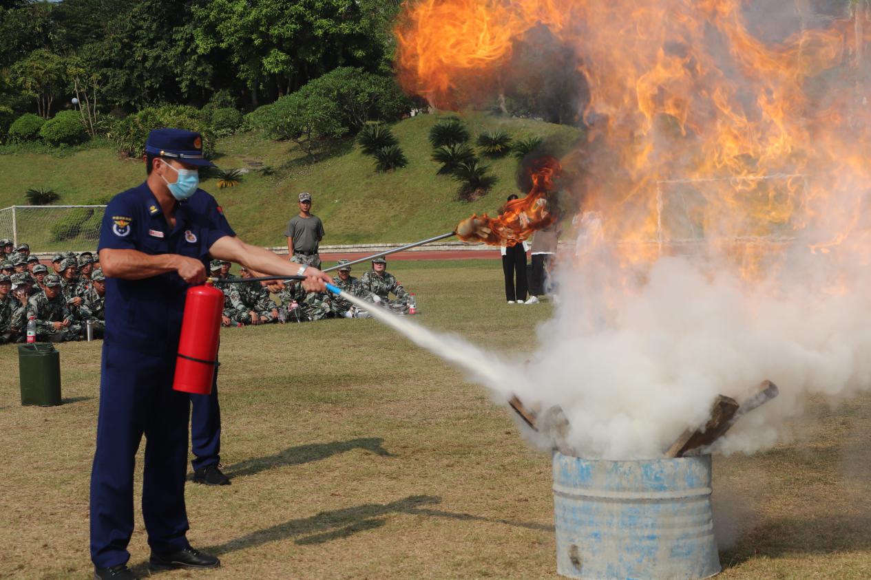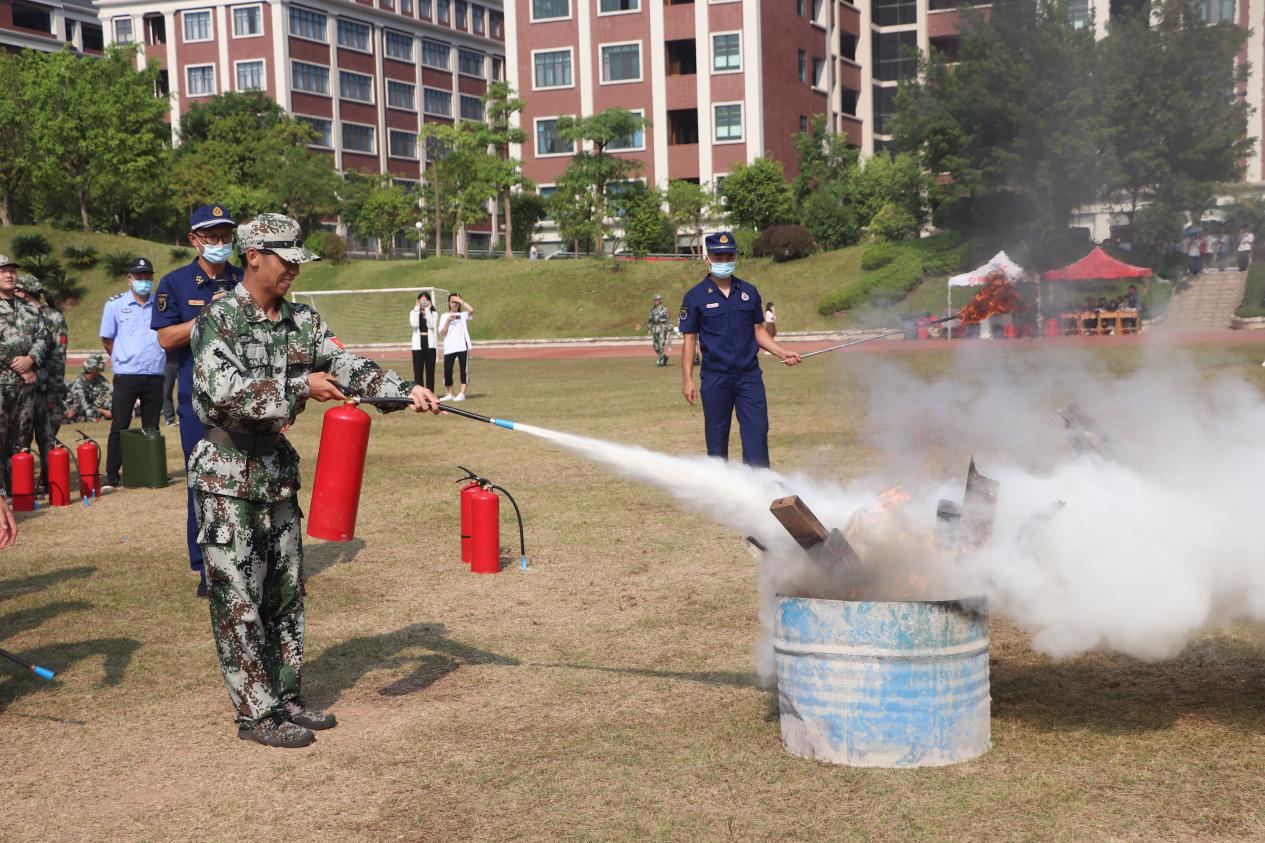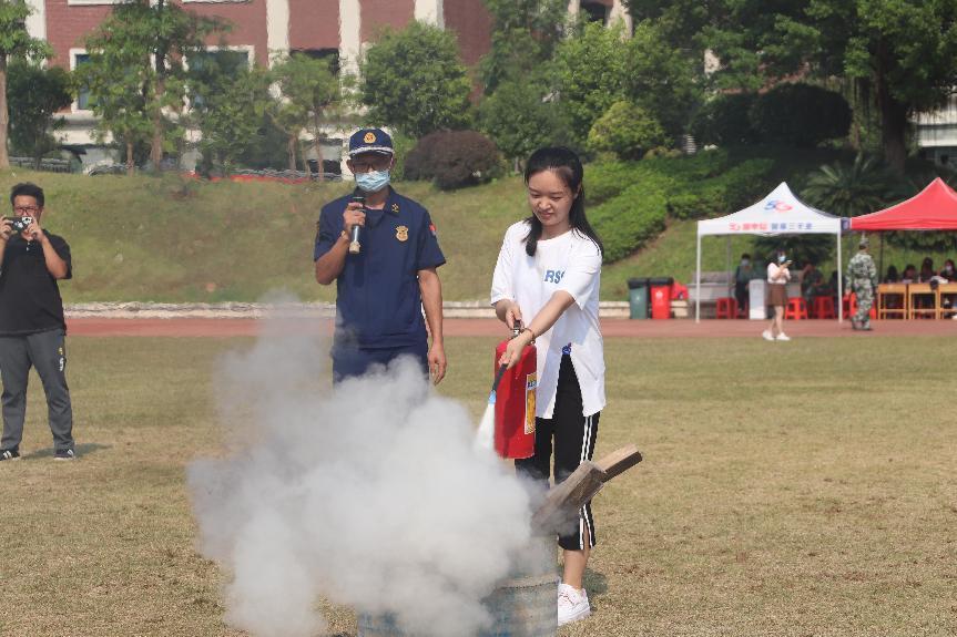 随后,在消防特勤队员的指导下,部分师生员工代表亲身实践体会使用灭火器灭火的过程。面对熊熊燃烧的火堆,师生代表们神情专注、沉着应对,正确地按照灭火的步骤和方法,将汽油燃起的浓烟大火成功的迅速扑灭。本次参与演练的师生员工都得到很好的技能锻炼与消防知识提升,演练活动达到预期效果。