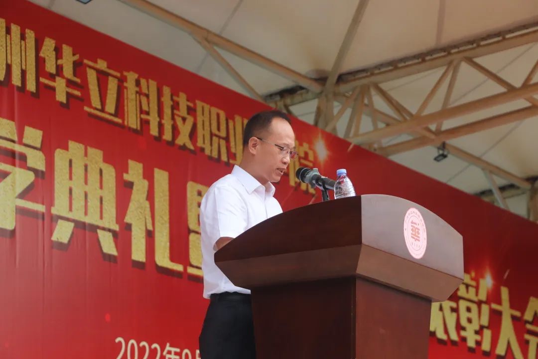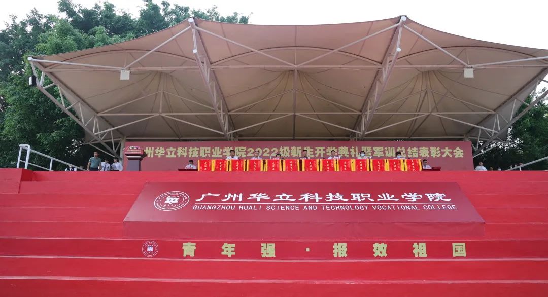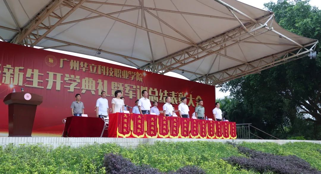 金秋送爽,希望绽放;九月征途,扬帆启航。清晨,当阳光洒在田径场上时, 2022级的新生汇聚一起,怀着兴奋、激动的心情迎接他们大学生涯的第一个重要时刻——新生开学典礼暨军训表彰大会。9月19日、20日上午,广州华立科技职业学院举行2022级新生开学典礼暨军训表彰大会。学校校长易健民,党委书记陈良声,常务副校长马俊,副校长陈显强,校长助理郭仲先、叶春桃,广州市增城区人民武装部军训团团长唐华、谢伟超,各职能部门和学院负责人出席了典礼。2022级全体新生参加典礼。广州校区典礼由党委副书记、副校长高尧来主持,云浮校区典礼由校长助理王洪艳主持。