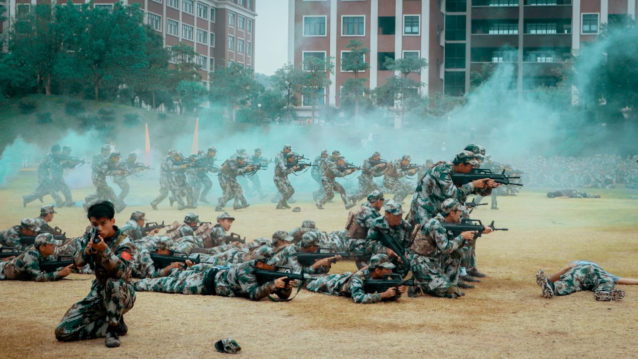 学校党委副书记、校长易健民在军训团阅兵总指挥陪同下,对受训同学组成的方队进行了检阅。同学们列队整齐、精神抖擞、步伐矫健、口号铿锵响亮,军体拳、匕首操、棍法、医护与救治、战术演练等训练科目表演,动作整齐规范,精彩连连。华立学子昂扬向上、奋发进取的精神面貌充分展现了当代青年的时代风采。表演精彩纷呈,赢得了阵阵掌声。