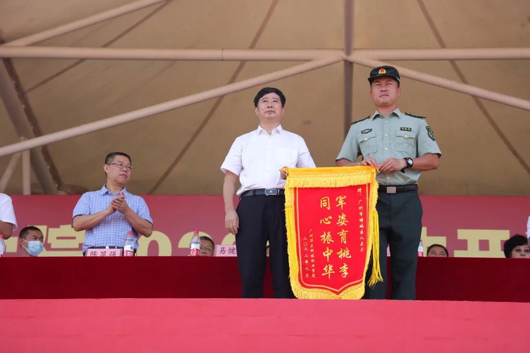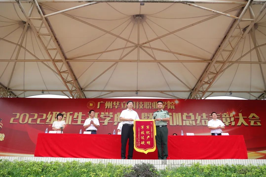 易健民校长向承训单位赠送了锦旗。校领导和嘉宾为在军训中表现突出的先进连队、优秀军训生颁发了荣誉证书。