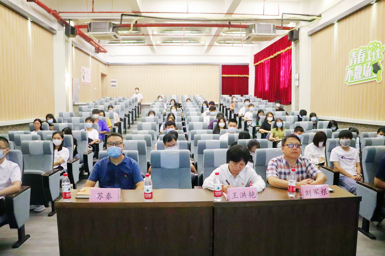 专题报告会在我校云浮校区小礼堂举行,会议由学校党委副书记、云浮校区管委会主任、校长助理王洪艳主持,相关部门负责人,全体师生党员和思政课教师出席大会。