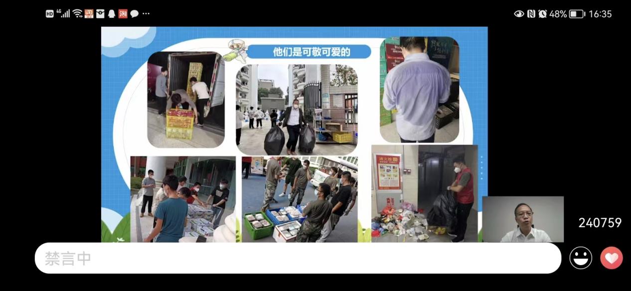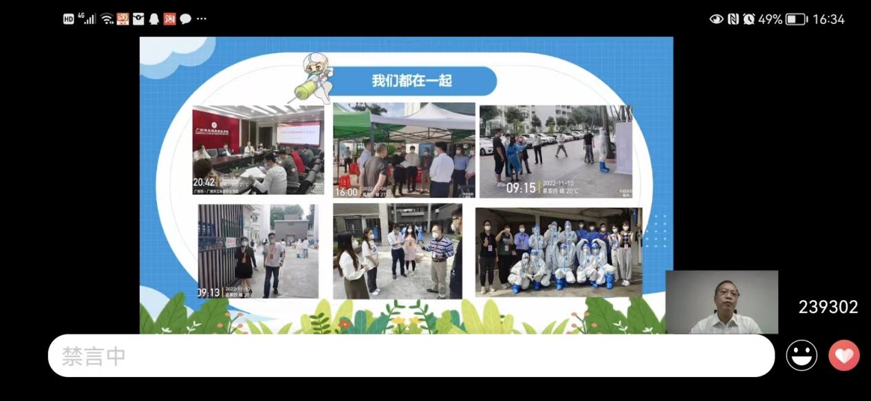 陈书记首先给我们介绍了目前疫情防控情况,表示新冠肺炎疫情爆发以来,中国人民用可歌可泣的战“疫”实绩向国际社会传递了中国战“疫”必胜的信心和希望,让世界看到了中国的责任与担当。然而,随着病毒不断变异,本轮疫情来势汹汹。广州市正面临抗疫三年以来最复杂、最严峻的疫情,而我校也面临抗疫三年以来最艰难的时刻。陈书记向大家发出疑问:在这关键时刻,我们应该如何做好防疫,同心协力打赢这场疫情防控攻坚战呢?