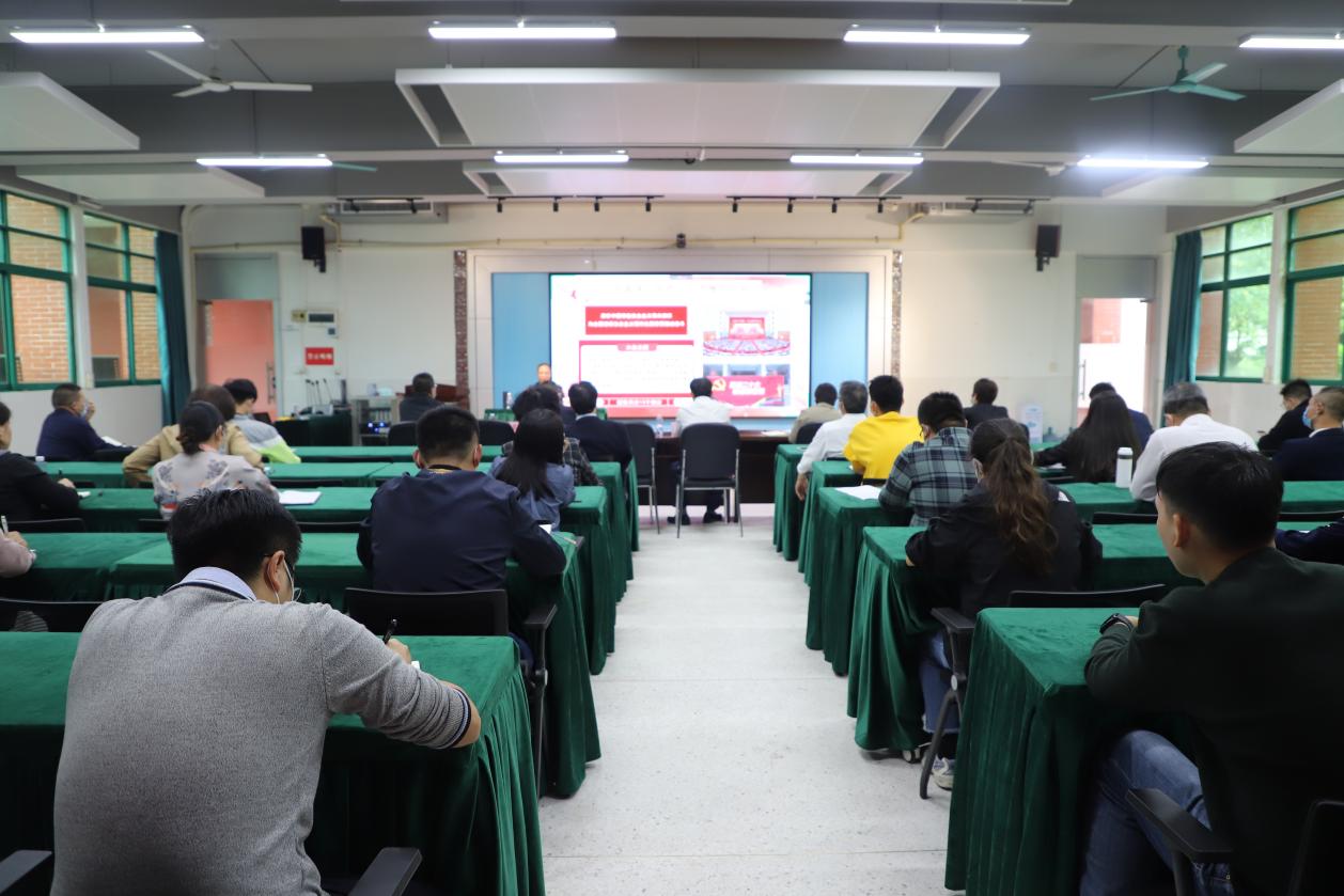 校长易健民,党务副校长马俊,副校长陈显强,党委副书记高尧来,校长助理叶春桃以及各部门主要负责人,二级学院党组织负责人参加了会议。学校党委副书记王洪艳,校长助理郭仲先和云浮校区党务干部及各部门负责人,通过视频连线参加了学习。