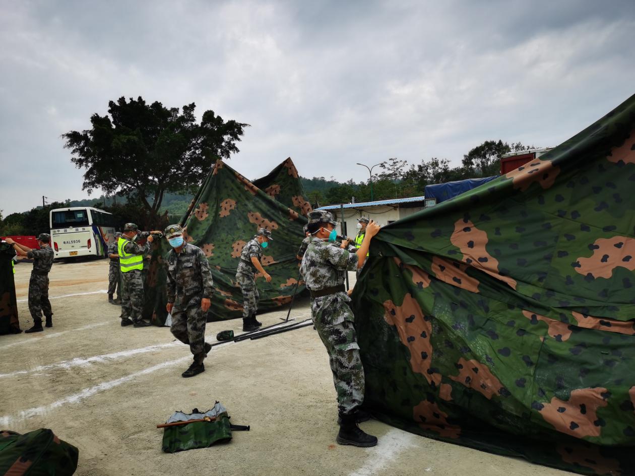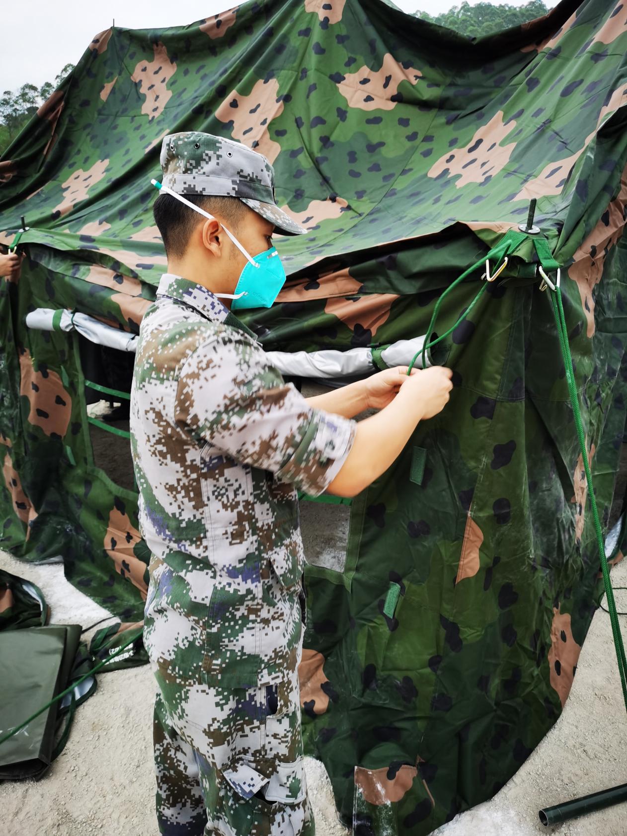 在全体人员的共同努力、团结协作下,经过6个多小时的奋战,高标准完成此次保障支援任务,共完成了21顶军用帐篷、68顶民用帐篷的搭设,保障了320个床位和床上用品等生活物资,顺利交付政府投入使用,为增城区疫情防控工作提供了强有力的保障。支援行动结束后,我校收到中国人民解放军广州市增城区人民武装部发来的感谢信,特别感谢我院对此次工作的大力支持,并高度赞赏领队陈胜军同志的严密组织工作,同时表扬我院退役学生的积极配合并出色完成工作任务,特别是洪济沛、李祥鸿、黄安潇等同学的奉献精神。