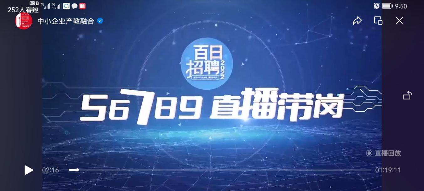2022年11月28日中午14点正,我校和工信部中小企业百日招聘节目组成功录制的“百日招聘56789直播带岗”学校专场节目准时在百日招聘56789直播带岗平台播出。