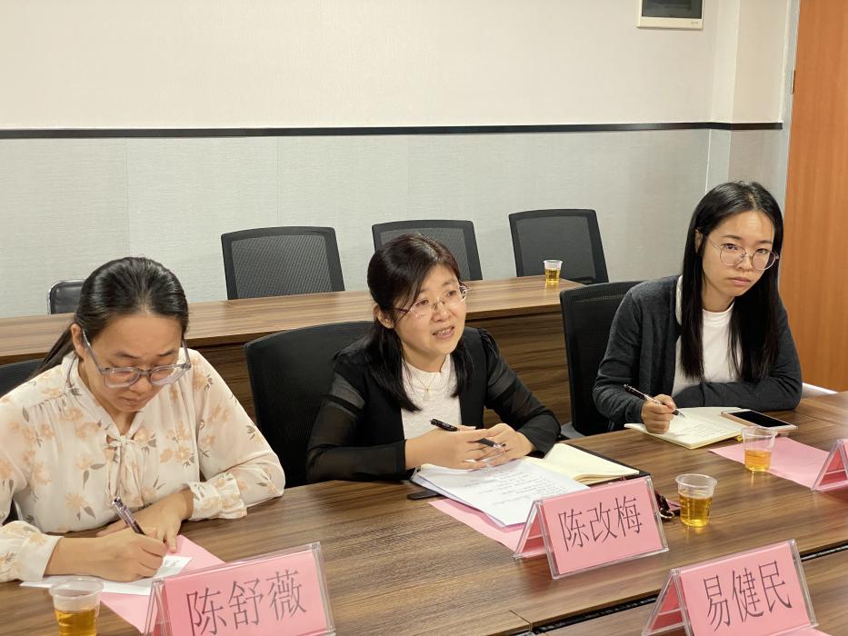 艺传学院陈改梅副院长代表学院对易健民校长一行的调研指导表示热烈的欢迎,就学院近期品牌建设和工作推进情况、学院品牌建设发展规划、专业群建设思路、实训室建设和改造、师资队伍、科研竞赛等方面做详细的汇报,明确学院品牌建设目标。