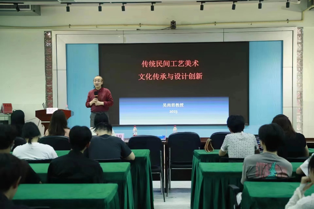 2023年4月13日下午,我校特邀湖南师范大学美术学院博士生导师吴尚君教授在学校图书馆104报告厅举办了以“传统民间工艺美术-文化传承与设计创意”为主题的讲座。我校常务副校长马俊、艺术与传媒学院副院长陈改梅等出席了本次活动。讲座由常务副校长马俊主持。