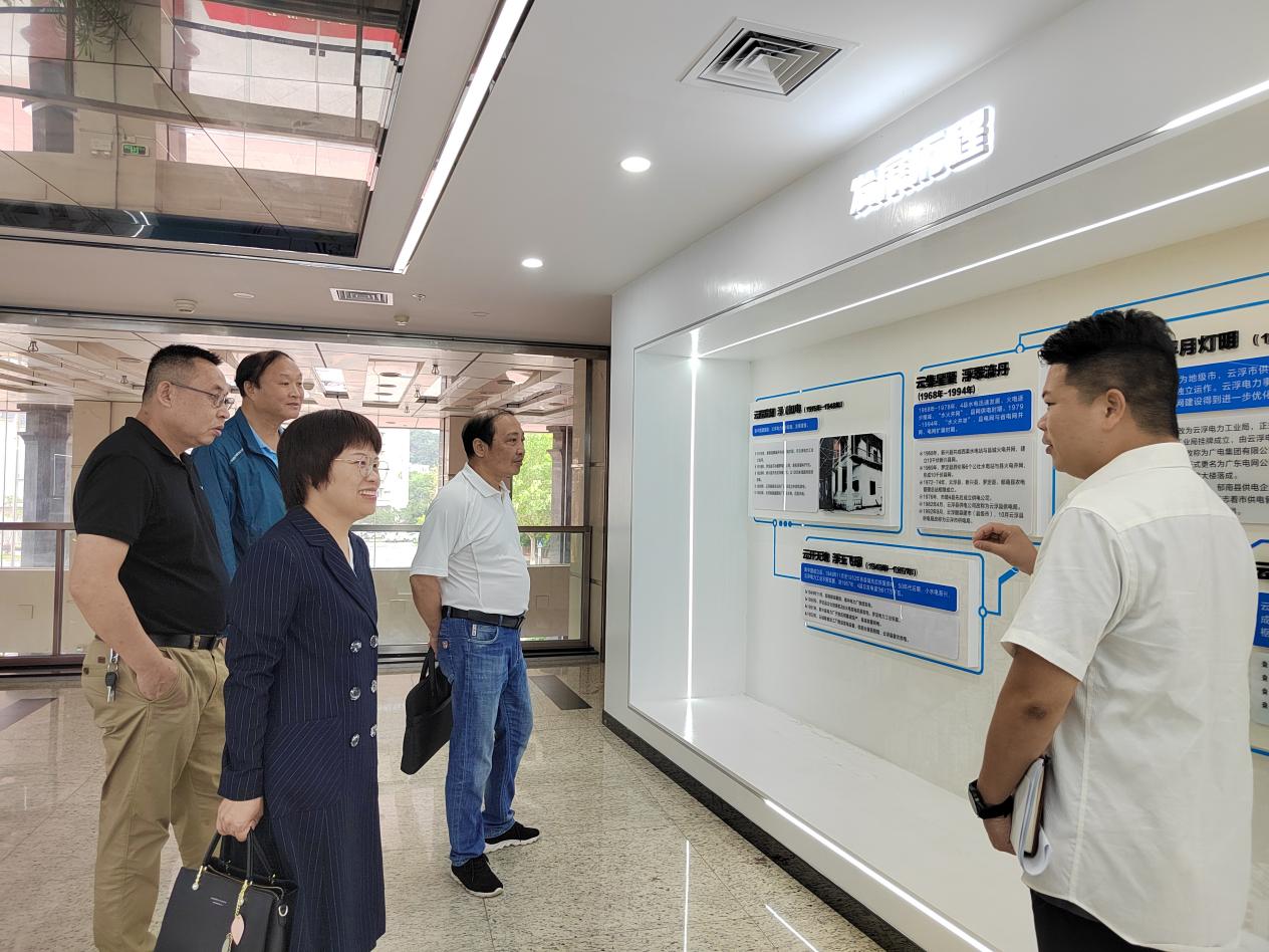 王洪艳副校长一行先后参观了云浮供电局发展历程、项目产品等展厅设施,详细了解云浮市供电局发展历史和现况、线路巡视无人机应用、职工电力创新成果等情况。