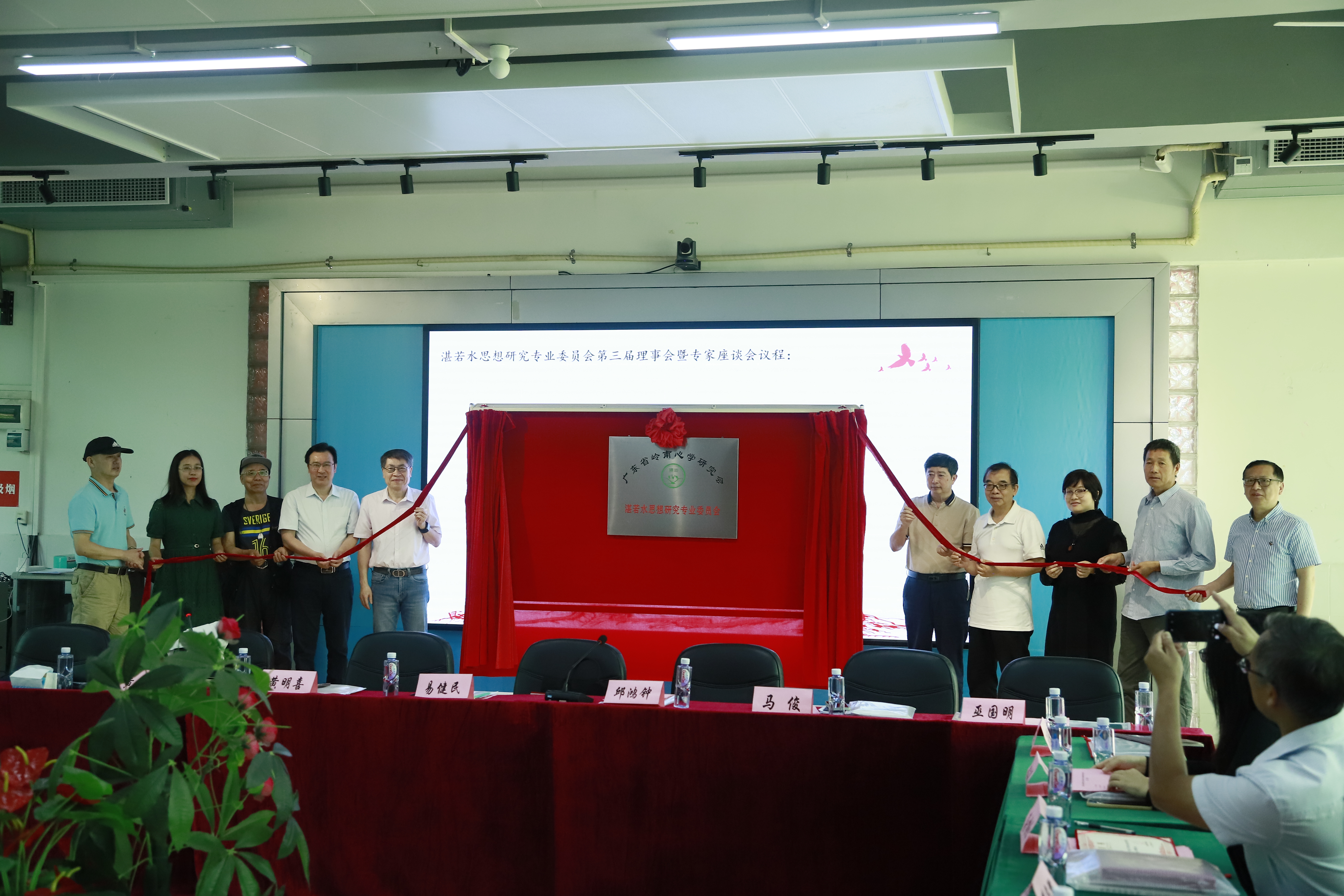 研究会邱鸿钟会长、黄明喜副会长、黄时华秘书长、增城区文联原主席巫国明、区文史委原主任陈克和我校易健民校长、马俊常务副校长、学校马克思主义学院廖良初院长、学校品牌发展研究中心刘宇赤主任、科研处徐中海副处长等领导上台共同揭牌。