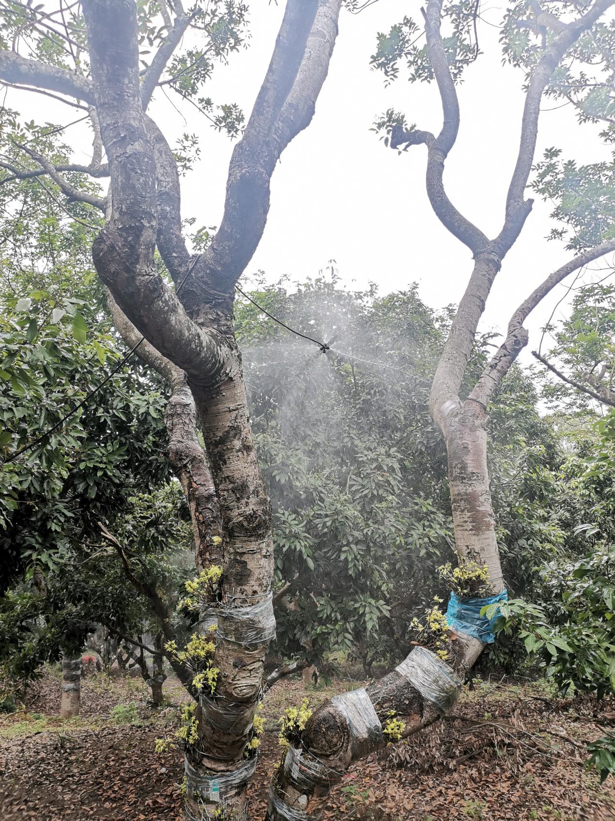 2022年4月,李向林教授科研团队与增城区荔城街道马屋村四季常青农业合作社开展校企合作,利用该农业合作社所属的30亩荔枝果园共建铁皮石斛仿野生种植示范基地。今年伊始,李向林教授科研团队帮助指导马屋村铁皮石斛种植基地安装了喷雾灌溉装置,这不仅改变了人工喷水费时费工的问题,而且便于科学调节湿度,有利于铁皮石斛的生长。目前,李教授科研团队还尝试将石斛种在乌榄树上,现已取得初步成功。