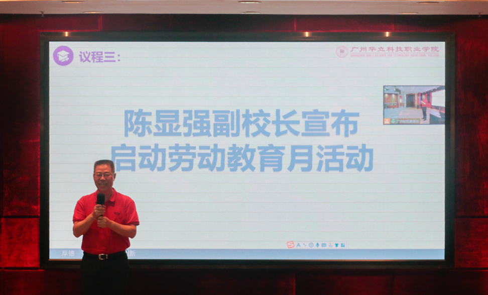 启动仪式由教务处吴青峰处长主持,副校长陈显强、广州校区、云浮校区各部门负责人参加了大学生劳动教育月启动仪式。