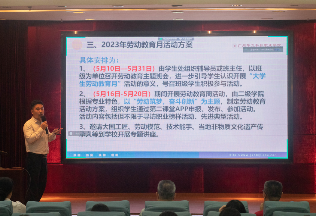 五月是属于劳动者的月份,为了大力弘扬新时代劳动精神、劳模精神和工匠精神,努力提升大学生的生产劳动技能和落实《中共中央 国务院关于全面加强新时代大中小学劳动教育的意见》要求,5月11日我校在广州校区东区图书馆1号报告厅隆重举办2023年大学生劳动教育月启动仪式,云浮校区以视频连线的方式参加,活动主题为“劳动筑梦 奋斗创新”。