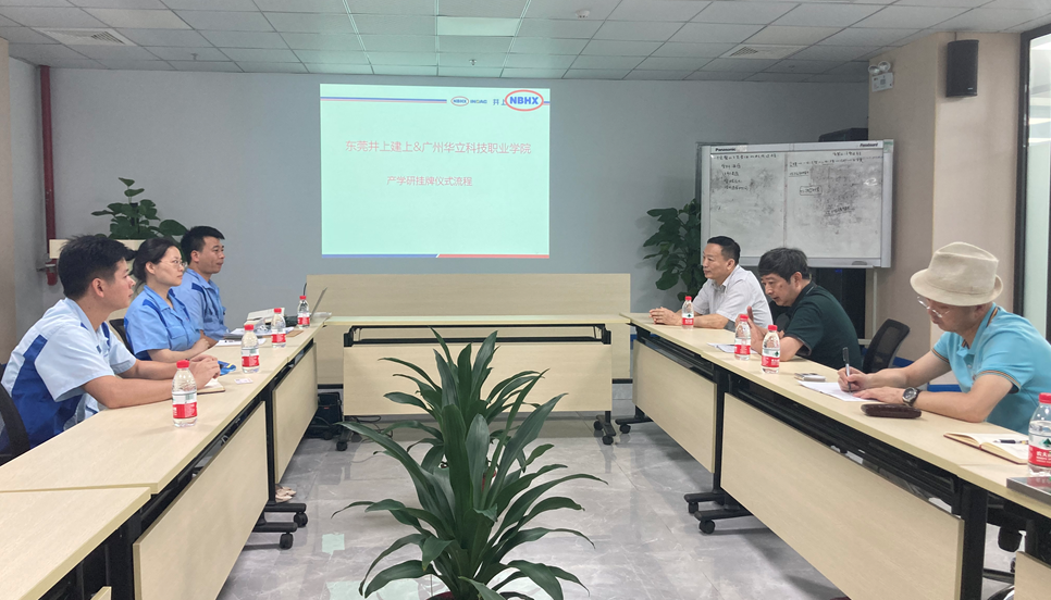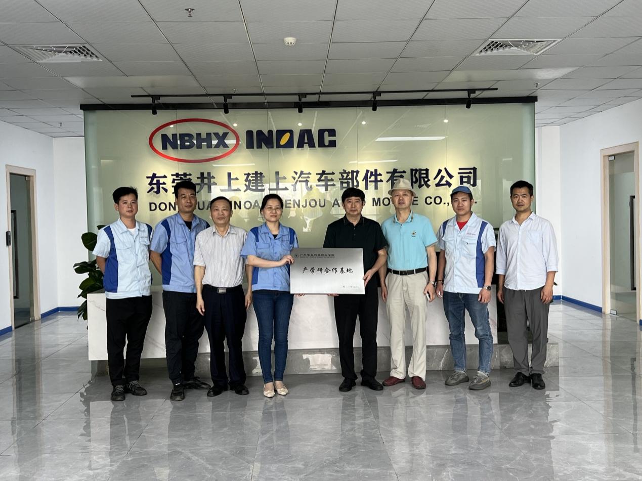 2023年5月18日,广州华立科技职业学院易健民校长、科研处徐中海副处长、电力与智能制造学院王秀敏院长、杨军副主任等一行人,前往东莞井上建上汽车部件有限公司举行了产学研合作基地授牌仪式。东莞井上建上汽车部件有限公司黄敬宁副总经理、人事部李晓明经理、开发部陈海苏经理、生产部李向辉工程师对易校长一行人的到来表示热烈欢迎。