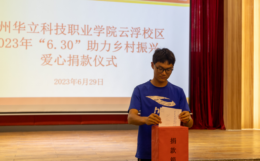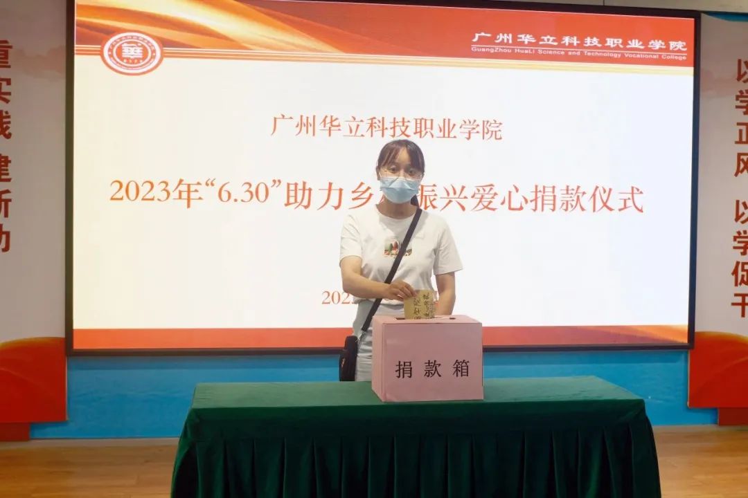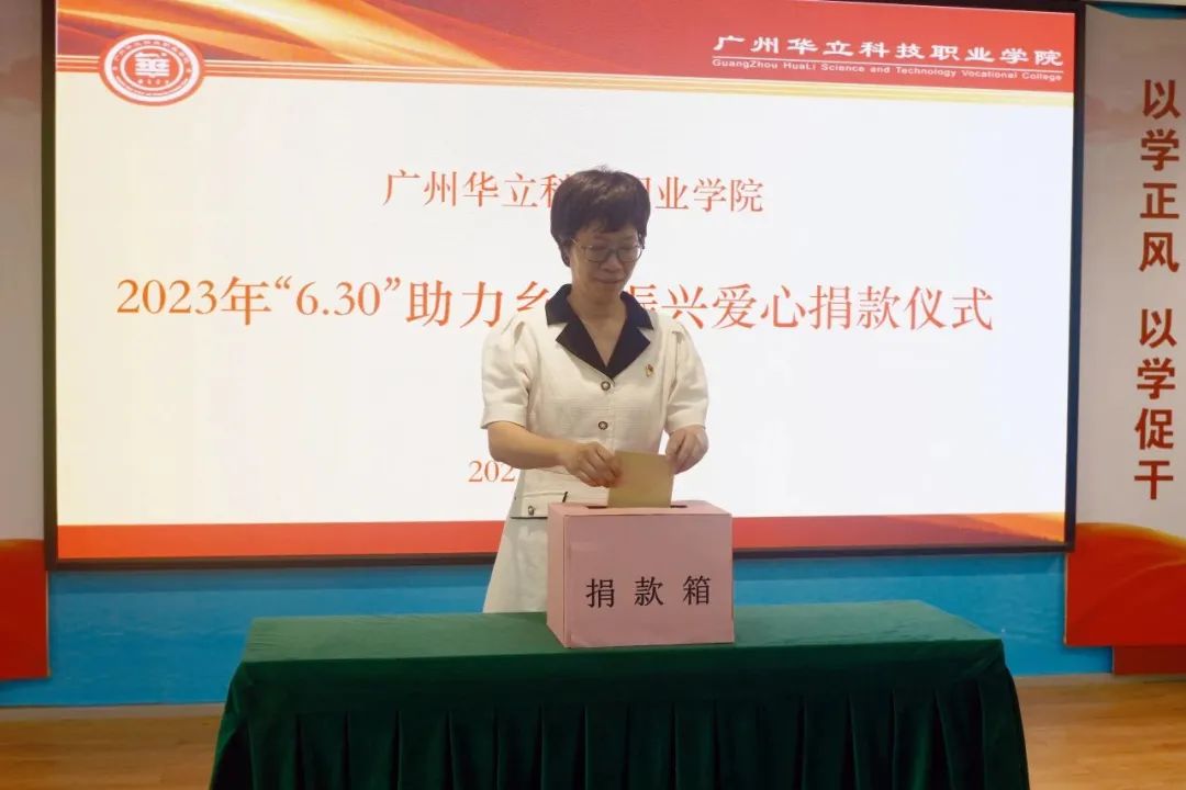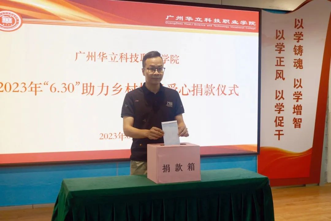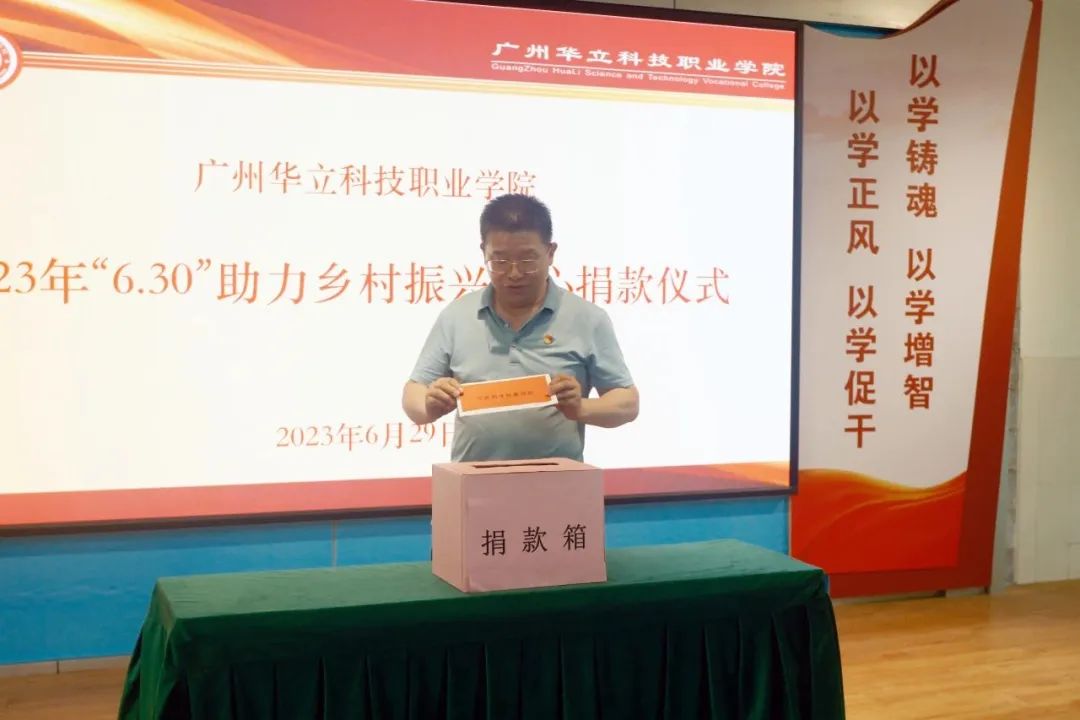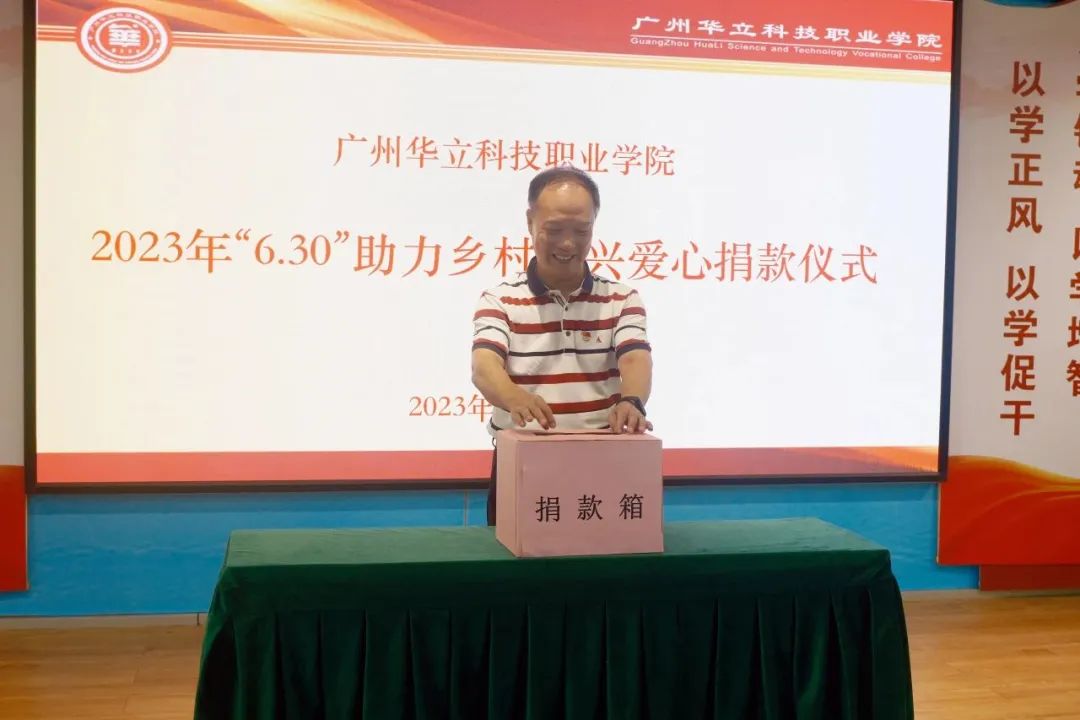 按照省委、省政府关于实施“百县千镇万村高质量发展工程”决定和乡村振兴战略工作部署,根据《广东省教育厅关于开展2023年“6.30”助力乡村振兴活动的通知》文件精神,6月29日下午,学校工会举行了“6·30”助力乡村振兴爱心捐款活动。学校领导班子成员、教师代表、学生代表参加了捐款仪式。捐款仪式由工会主席、常务副校长马俊主持。