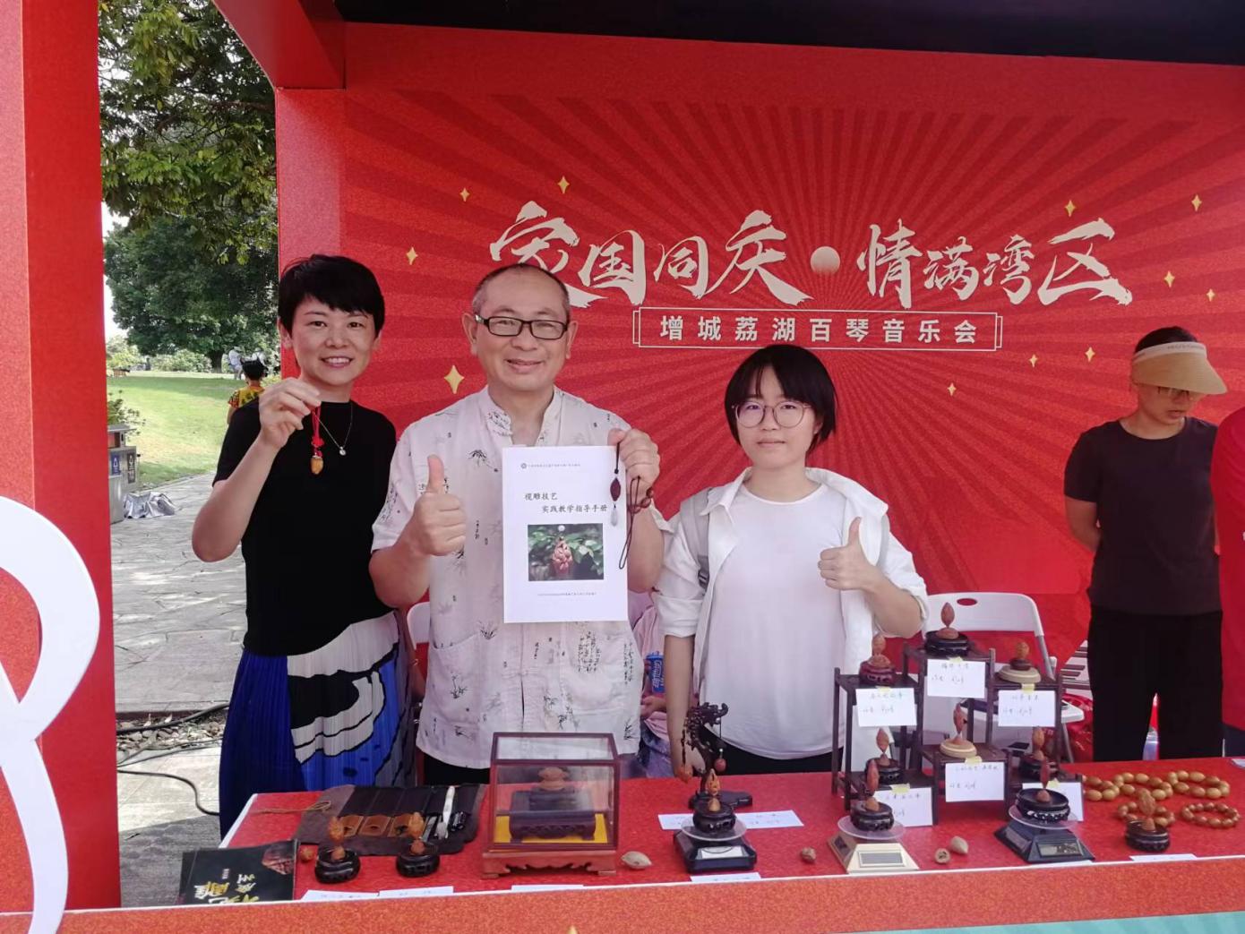 9月29日上午,“家国同庆,情满湾区”荔城荔湖百琴音乐会在广州市增城区荔湖广场开幕。本次音乐节为期3天,由广东省委宣传部、广东省文化和旅游厅、中央广播电视总台广东总站指导,广州市委宣传部、广州市文化广电旅游局、增城区人民政府主办,增城区委宣传部、增城区文化广电旅游体育局、广州珠江钢琴集团股份有限公司承办。通过文艺汇演、开设圆桌故事会、特色文创产品、非物质文化遗产展示等多种形式歌颂伟大祖国,与广大市民群众共度中秋佳节。我校榄雕协会师生参加并助力宣传推广国家级非物质文化——广州榄雕。
